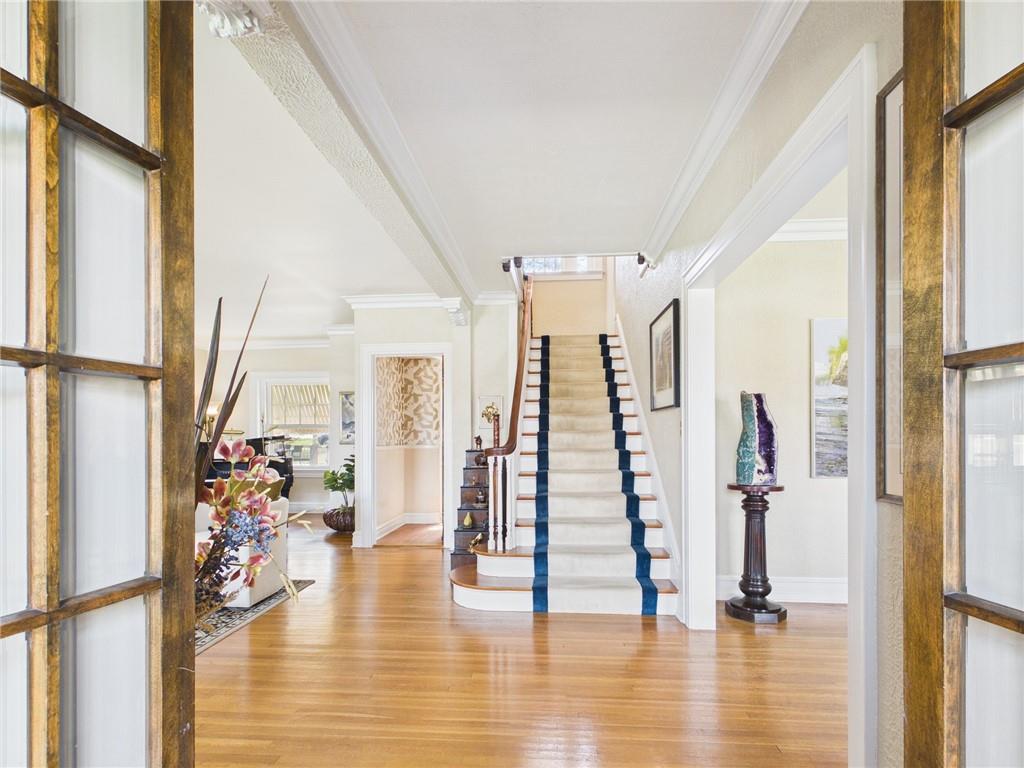 A Heritage Estate: 1925 Brick Masterpiece Reimagined 1.08-Acre In-Town Sanctuary | Architectural Spa Retreat | Bespoke Luxury Experience a rare blend of Roaring Twenties elegance and affluent modern living. This meticulously restored 1925 brick estate, situated on a sprawling 1.08-acre private park in the heart of town, is a curated lifestyle. Transformed by a visionary owner, every inch of this 3,823 sq. ft. manor reflects uncompromising quality and architectural artistry. Architectural Synergy & Interior Grandeur The residence honors its historic roots with a classic red clay tile roof and Spanish-Eclectic accents, while the interior is a contemporary masterpiece. • Voluminous Living: Soaring vaulted ceilings with exposed timber beams and a sleek linear fireplace create a grand atmosphere. • Light as Art: Ornate leaded glass, arched transoms, and expansive bays flood the home with natural light. • The Collector’s Palette: Rich custom millwork and a seamless flow of premium hardwood and tile (no carpet) underscore a clean, high-end aesthetic. • Versatile Living: 3 spacious bedrooms and 2.5 baths are complemented by a fully finished attic and basement, ideal for a private gym or media room. The Private Oasis & Outbuildings The exterior is an entertainer’s paradise, designed for total privacy. • The Spa Pavilion: A "one-of-one" feature, this custom indoor patio and spa showcases Art Deco-inspired lines and a signature circular window for year-round relaxation. • Manicured Grounds: Over an acre of immaculate landscaping, stone-bordered beds, mature evergreens, and a charming gazebo. • Automotive Excellence: A sprawling concrete drive leads to an oversized 3-car garage plus a 2-car carport, perfect for a premium vehicle collection. Enjoy the ultimate luxury: Space without sacrifice. This estate offers the rare tranquility while remaining centrally located. You are moments from the town, yet worlds away in your own private sanctuary.