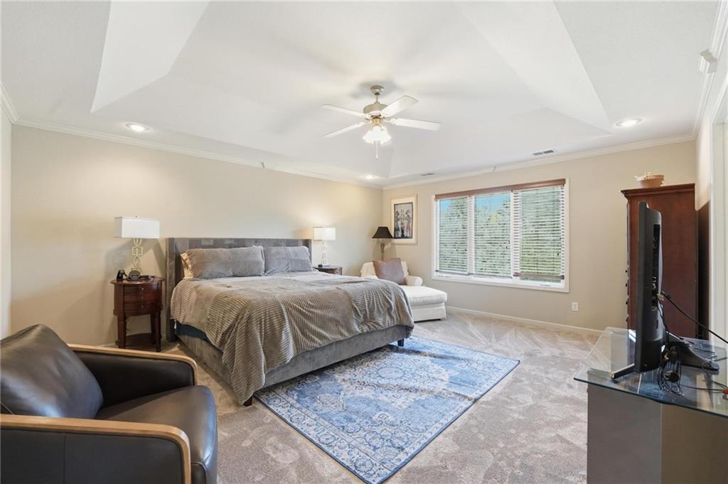 Don't miss the exceptional value in The Fairways! This stunning 4-bedroom, 3.5-bathroom home offers an unparalleled living experience. Enjoy fresh exterior and partial interior paint, new garage doors, and meticulous landscaping for impressive curb appeal. The open kitchen boasts newer appliances, double ovens, an island, and granite countertops, flowing seamlessly into the dining and eat-in areas that open to a charming patio. The spacious family room and the mid-level den, each feature fireplaces – perfect for entertaining or quiet evenings. All generous sized bedrooms, including new carpet in 2 of them.The primary suite also offers new carpet, vaulted ceilings, a walk-in closet, jetted tub, and dual vanities, plus convenient upstairs laundry. The lower level is an entertainer's dream with an library/office featuring a 15-foot ceilings with custom built-ins, a third fireplace and french doors. You'll love the dual staircase leading to an exercise room, and a theater/family room. Ample storage throughout! With 6-year-old HVAC and approximately a 10-year-old roof, this home features a lot of crown molding and beautiful hardwood floors. All appliances stay with the home. Located just minutes from shopping, top-rated schools, the airport, major highways, and two golf courses, it truly has something for everyone. Schedule your showing today – this one won't last!