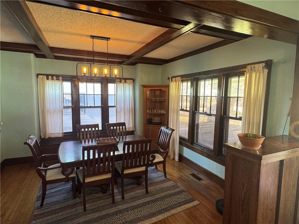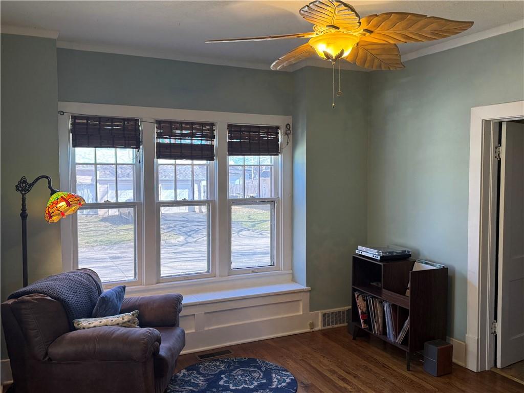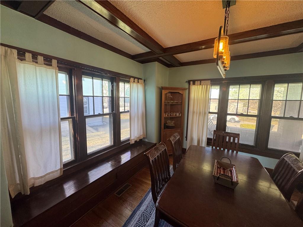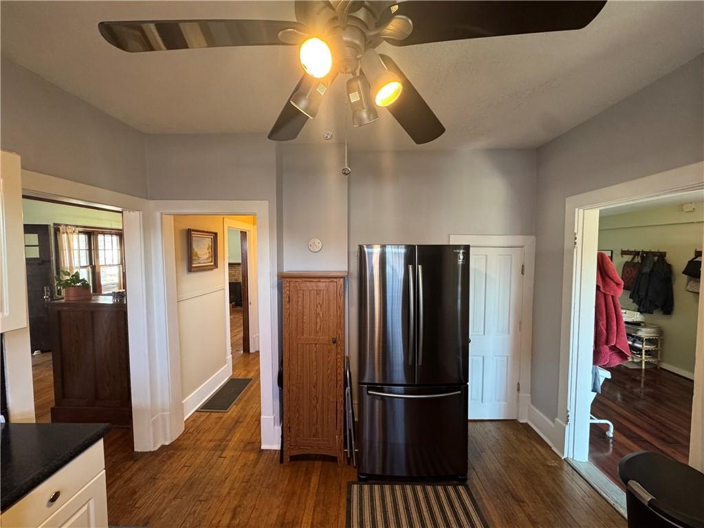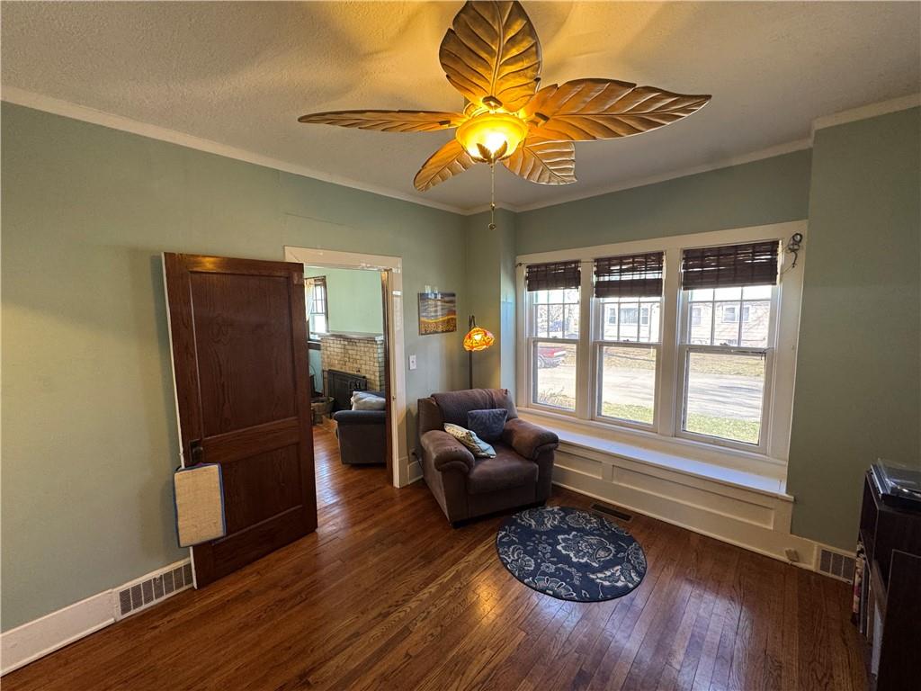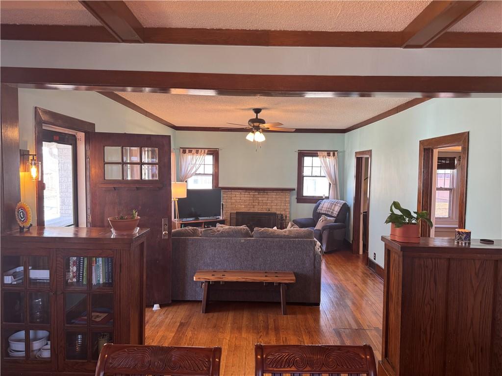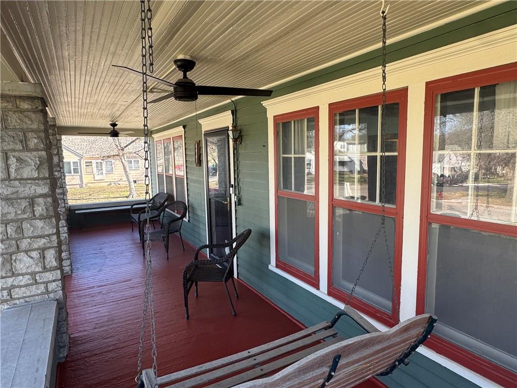 This charming 1.5-story home offers classic character and modern convenience. Four bedrooms with walk-in closets and two full baths provide flexible living space — ideal for families or those who love hosting. Original beautiful hardwood floors along with built-in bookcases and window seats. Warm wood floors flow through the main living areas, creating an inviting, timeless atmosphere. The home sits on a desirable corner lot and features a welcoming front porch perfect for morning coffee or evening relaxing. A dedicated laundry room adds practicality, and the attached one-car garage offers secure parking and extra storage. Full basement for storage as well. Well-maintained and full of curb appeal, this Paola home blends traditional charm with everyday functionality.