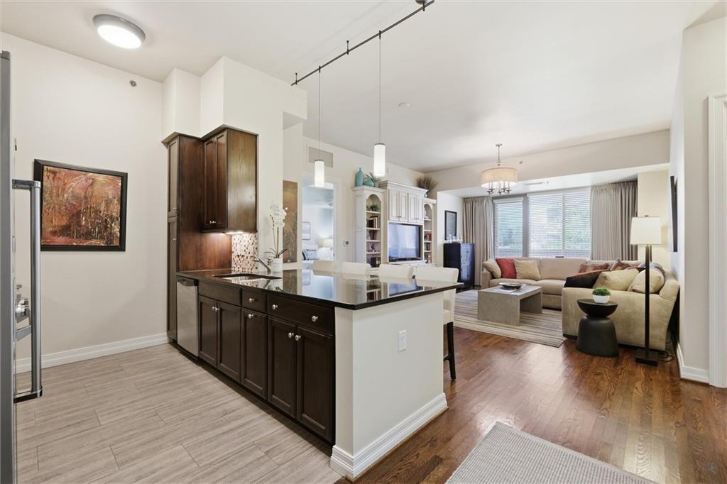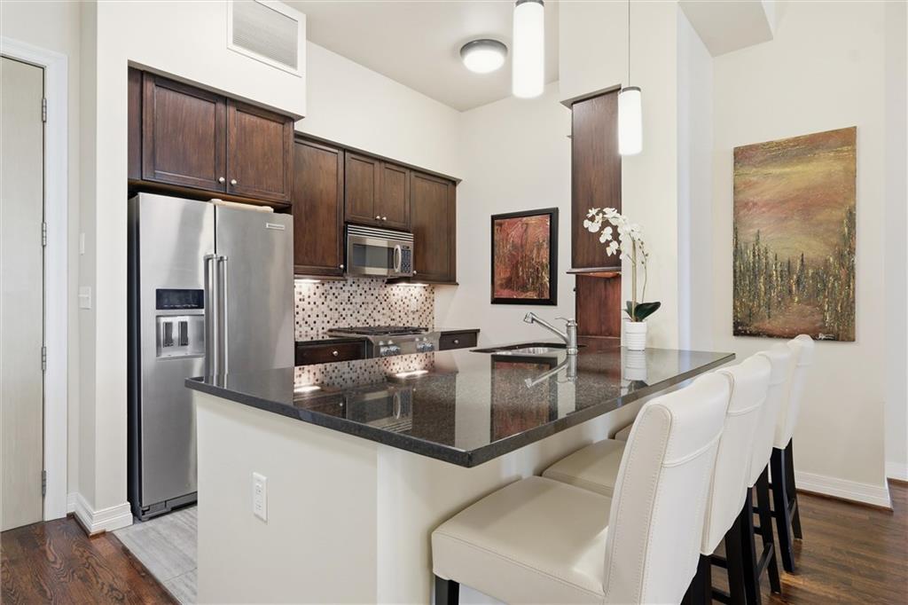 Experience stylish sophistication paired with the ease of lock-and-leave living in this exceptional condominium at Kirkwood. Thoughtfully designed for both everyday comfort and effortless entertaining, the residence features an open-concept kitchen and living area with perfect flow for easy entertaining. The well-appointed kitchen showcases granite countertops, stainless steel appliances, a gas cooktop, and island seating—perfect for casual dining or hosting guests. The large primary suite offers a private retreat, complete with a spa-inspired bathroom and a spacious walk-in closet. A generously sized guest bedroom is conveniently located near the second full bath, which also houses a discreetly placed stackable washer and dryer. The Grove at Kirkwood is defined by quiet elegance. Residents can enjoy an array of premier amenities in the Circle building including a well equiped fitness center, resort-style pool, clubroom with catering kitchen, boardroom, and 24/7 concierge service. Ideally situated in the coveted Country Club Plaza neighborhood, this residence places you moments from Kansas City’s finest dining, shopping, and entertainment district.