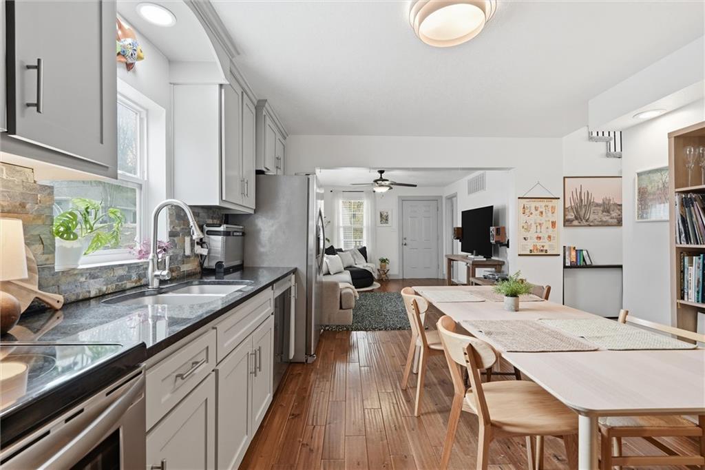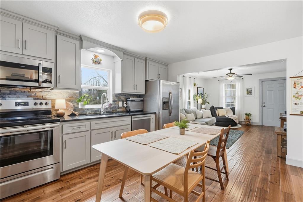 This charming bungalow offers a functional layout, thoughtful updates, and a location that’s hard to beat, just 10–15 minutes from Downtown, Overland Park, and the Northland with quick highway access for easy commuting. Inside, you’ll find brand new carpet, updated appliances, and a blend of hardwood and cozy finishes that feel both comfortable and inviting. The layout includes two bedrooms on the main level and two bedrooms on the second level, allowing for a private upstairs suite with its own bathroom, perfect for guests or added flexibility. The outdoor spaces truly shine, featuring a newly built back patio ideal for hosting, plus a welcoming front porch to relax and unwind. The spacious backyard offers plenty of room for activities, along with a handy shed for extra storage. An extended driveway provides ample parking for multiple guests. Located in a quiet, established neighborhood with convenient access to restaurants, grocery stores, and everyday essentials, this home checks all the boxes. Schedule your showing today!