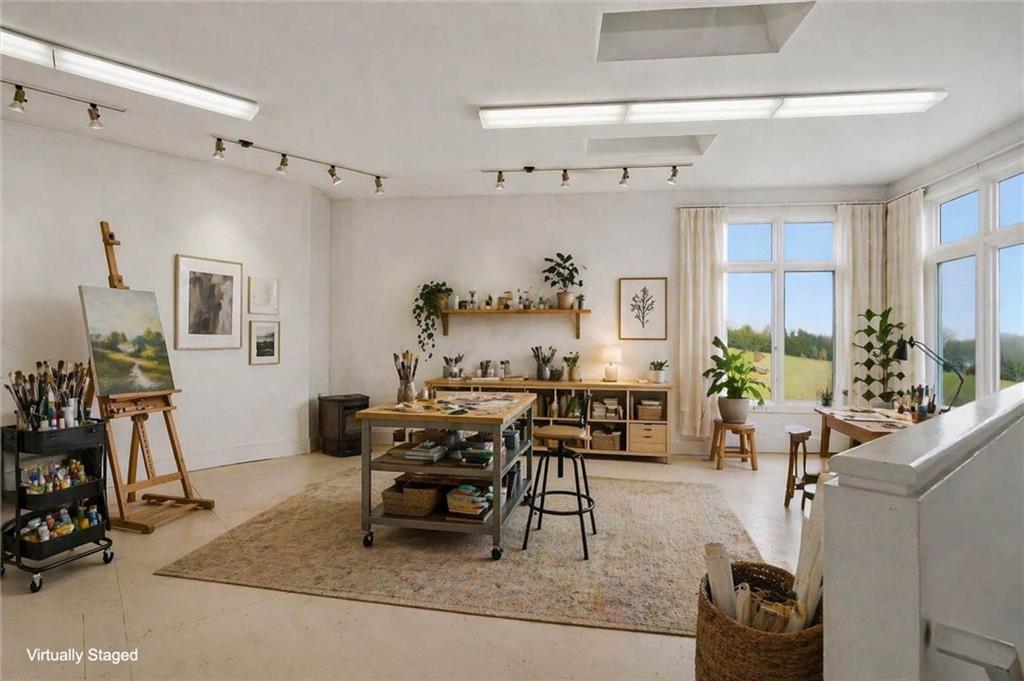 Set just north of Lawrence in the scenic Twin Ridge Heights West rural subdivision, this extraordinary 5.6-acre property offers a rare opportunity to own the personal residence and creative sanctuary of beloved Lawrence artist Louis Copt and his wife, Phyllis. Designed and built in 2002, the home reflects a lifetime devoted to art, craftsmanship, and intentional living. Inspired by the architectural principles of Frank Lloyd Wright, this vertical prairie-style home features expansive overhangs, strong lines, and a seamless connection to the surrounding landscape. Inside, the dramatic living room rises to 20-foot ceilings, anchored by a striking fireplace that uniquely backs to a wood-fired pizza oven imported from Italy—blending function, artistry, and gathering space into one unforgettable focal point. The home itself serves as a canvas, with artistic contributions from local talents Barry Fitzgerald and Kate Dineen woven throughout. Natural light pours into every space, enhancing both the architecture and the home’s gallery-like quality. Currently configured as a 2-bedroom, 2.5-bath residence, the main level includes a large open studio where Louis created much of his work. This space offers flexibility and can easily be converted to an additional bedroom and bathroom. Thoughtfully maintained, the home features a tankless water heater, a new roof in 2022, and a new septic tank installed in 2023. Outdoors, enjoy a peaceful setting with a sauna garden and sauna, storage shed, gardening shed, vegetable garden, and native landscaping. An additional 5-acre parcel directly north is also available (MLS #2605277), offering expansion potential or added privacy. A truly rare offering - where architecture, art, and place come together in a way that is nearly impossible to replicate. Disclaimer: Sight unseen offers may be accepted by the Seller. The Showing Begin Date is subject to change.
