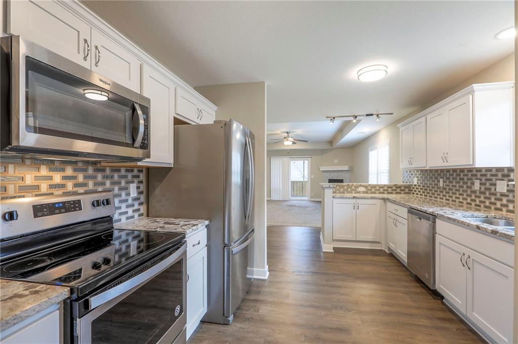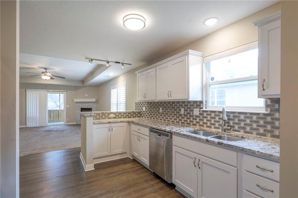Enjoy easy living in this well-maintained half duplex/ranch style home with quick and convenient highway access plus no steps throughout the home! Built just 8 years ago and lightly lived in, this home offers a bright, open feel all on one level. The spacious kitchen features granite countertops and plenty of room to gather, while the primary suite includes a walk-in closet and double vanity for added functionality. A vaulted second bedroom is filled with natural light, creating a warm and inviting space for guests or a home office. You’ll love the thoughtful touches throughout, including beautiful plantation blinds, low-maintenance siding, and a 2-car garage. Step outside to relax on the covered, screened-in back porch—ideal for enjoying the outdoors in comfort. A move-in ready home that checks all the boxes for easy, low-maintenance living!