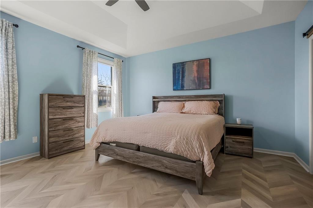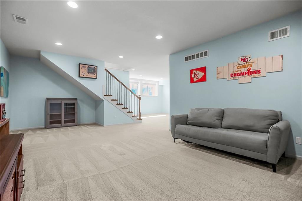 This Popular Reverse 1 1/2 story plan by D&M Builders is ready for you to move in! Enjoy the huge kitchen with 2 walk-in pantries that is open to the expansive great room with focal point fireplace. The dining room is conveniently a part of this space and opens to a covered deck. The covered deck has a bonus retractable awning extending the covered area. The large backyard is totally fenced. The home is conveniently located within walking distance to the sought-after Prairie Trail elementary school as well as middle and high schools. The community swimming pool is also nearby. Other features of this home include an instant hot water filler in the kitchen, front bedroom that has a full bath next to it, high ceilings in the great room, a soft water system, a radon mitigation system and a boot bench area as you come into the home from the garage. Please come take a look and make it your own!