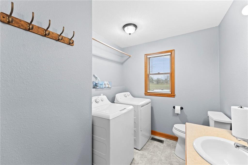 Stunning 5+ acre estate just moments from city limits! Beautifully renovated within the last two years, this 3-bed, 2.5-bath home features a functional layout with hardwood flooring and a cozy fireplace. The interior flows into a light-filled sunroom overlooking the expansive acreage. The partially finished basement offers versatility with a large recreation area and a non-conforming room perfect for an office or hobby space and is plumbed for an additional bathroom. Outdoor highlights include a partially insulated concrete floor 40x52 detached shop, a fenced area, and a 2-car attached garage. Enjoy the peace of the country with the convenience of being near town. Move-in ready and agent friendly. Schedule your private tour today!