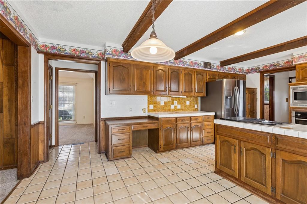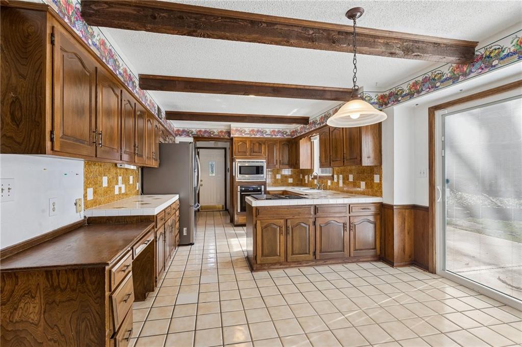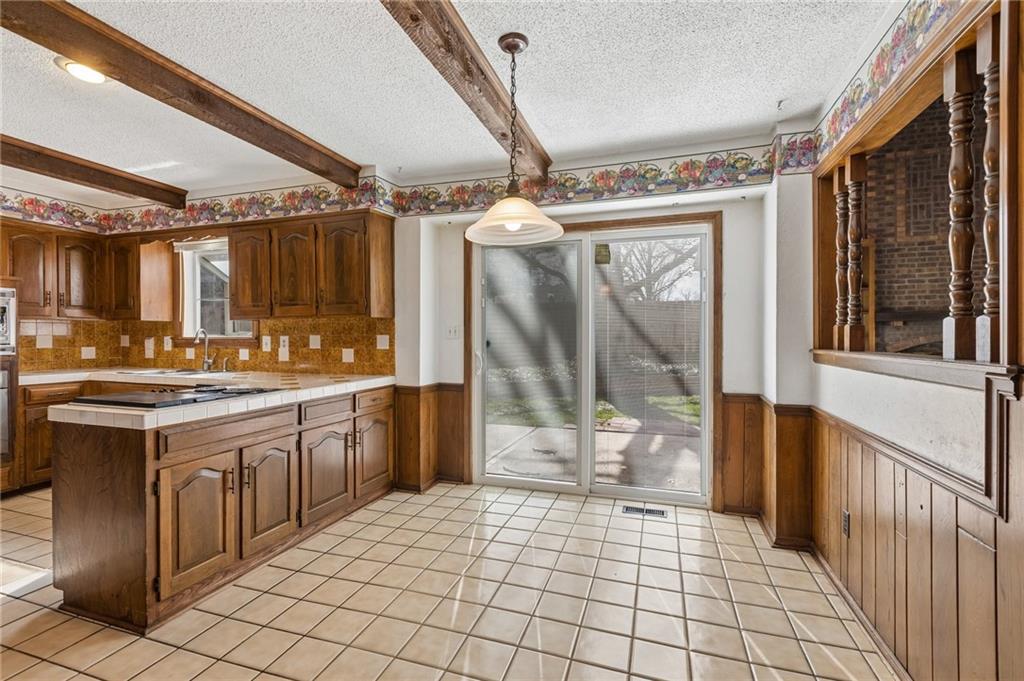 Centrally located in the heart of Overland Park, this spacious 1.5-story home offers the perfect blend of comfort, functionality, and convenience with easy access to shopping, dining, and major highways. Situated on a large corner lot, this home features 4 bedrooms and 3.5 bathrooms with a flexible and inviting layout. The main level includes an eat-in kitchen with a nearby half bath and laundry room, plus sliding door access to the back patio and yard—perfect for indoor-outdoor living. The kitchen flows seamlessly into the formal dining room, while a versatile room across the hall makes an ideal home office or sitting area. The impressive great room boasts vaulted ceilings, built-in bookshelves, and a cozy brick fireplace, creating a warm and welcoming space for gatherings. Also on the main level, you’ll find the primary suite along with a secondary bedroom and full bath, offering convenient main-floor living. Upstairs features two additional bedrooms and another full bathroom, providing plenty of space for family or guests. The expansive basement offers endless potential—whether you’re looking to finish it out with a 5th non conforming bedroom and living room for entertaining or simply need abundant storage. Don’t miss this opportunity to own a well-located home with room to grow in one of Overland Park’s most desirable areas!