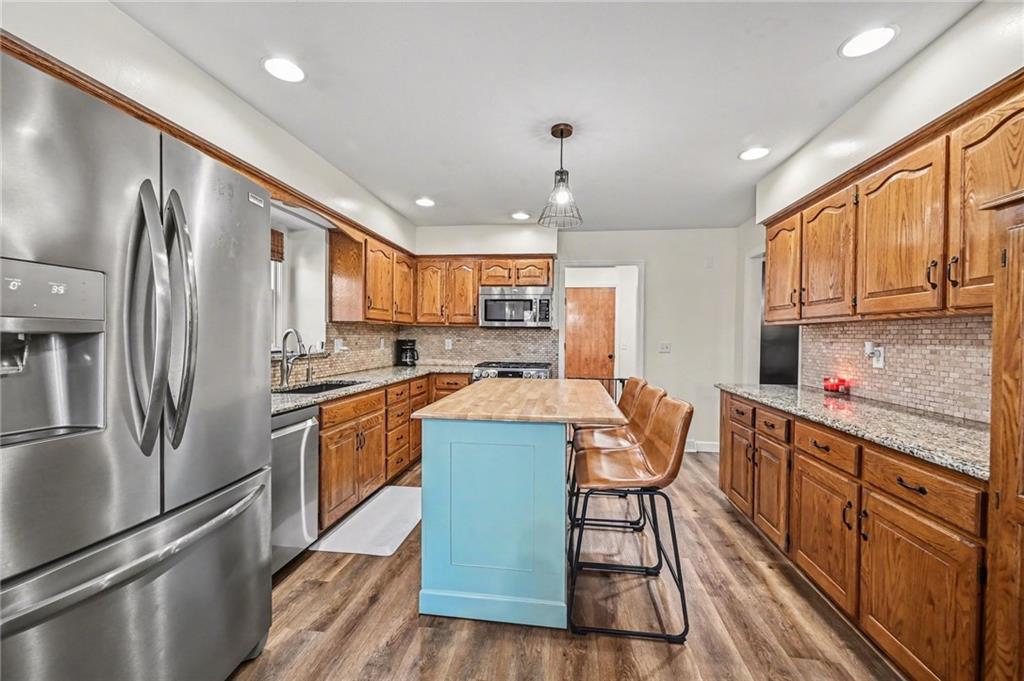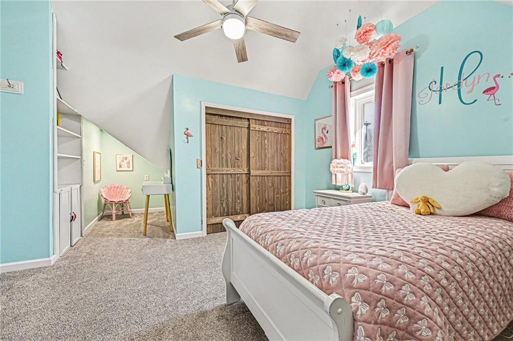 This stunning 1.5-story home offers 7 bedrooms, 3 bathrooms, and endless spaces for entertaining both inside and out. Step inside to be greeted by soaring vaulted ceilings and a cozy fireplace anchoring the great room, which flows seamlessly into the elegant formal dining area. The chef’s kitchen is sure to impress with its gas stove, granite countertops, abundant cabinetry, and spacious walk-in pantry The luxurious master suite is a retreat of its own, featuring a large walk-in closet, Jacuzzi tub, and private access to the deck. Secondary bedrooms are generously sized and located on all three levels, offering plenty of flexibility for family and guests including main level laundry hook ups. The finished lower level is an entertainer’s dream, complete with a family room, wet bar, game area, full bathroom, and two bedrooms. Storage is plentiful throughout the home. Outdoors, relax or host gatherings on the expansive two-tiered deck overlooking a huge backyard with mature trees and a creek. Sitting on over a half-acre lot, this property combines privacy, space, and convenience all in one. Don’t miss the opportunity to call this exceptional home your own!