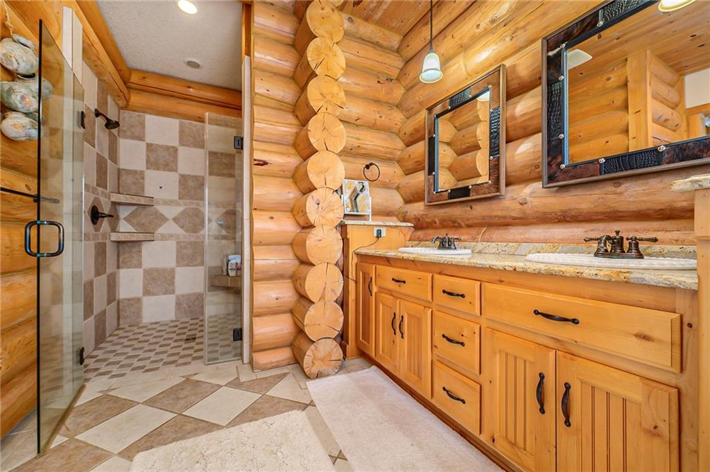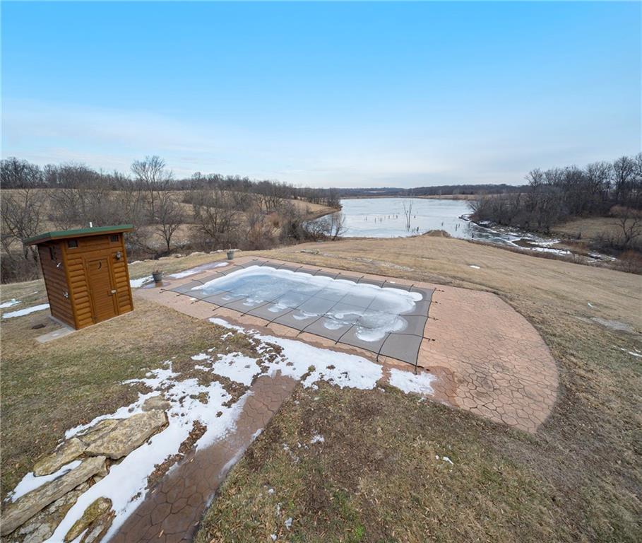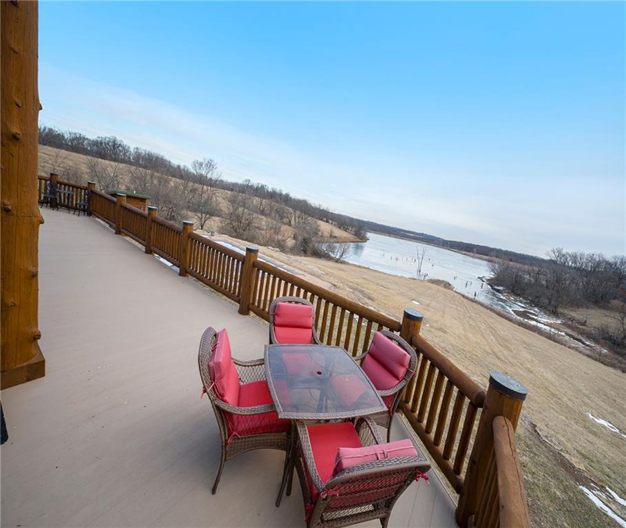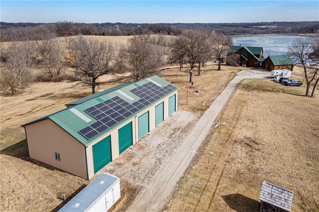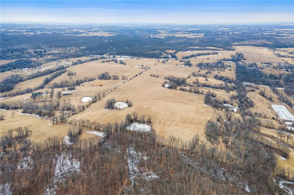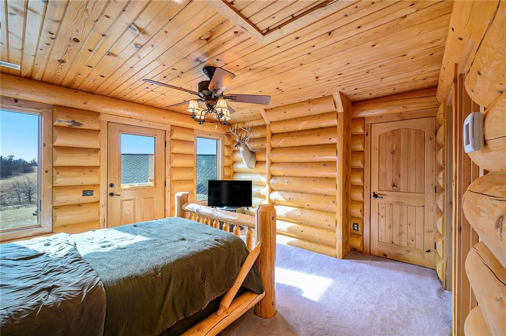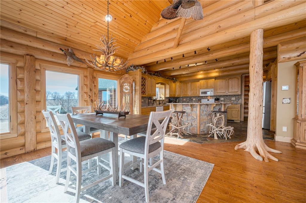 STUNNING CUSTOM LOG HOME located on 67+/- acres FULLY FENCED & cross fenced featuring a GORGEOUS LAKE!! 40x98 OUTBUILDING & lean to w/solar panels. PASTURE GROUND for your LIVESTOCK & HAY PRODUCTION along with timber. This RURAL RETREAT offers loads of RECREATIONAL OPPORTUNITIES for you and your family! The 4 bedroom 4.5 bath home offers an OPEN PLAN perfect for entertaining! CHEF'S KITCHEN features HUGE ISLAND, granite tops, CUSTOM CABINETS w/roll outs, pantry, dining space & more! SOARING CEILINGS & so many windows to take in the VIEWS! Main level primary suite w/SITTING ROOM & BEAUTIFUL STONE FIREPLACE! Don't miss the spacious laundry and mud room space for convenience. The upper level has 2 SECONDARY BEDROOMS with their own PRIVATE BATHS, walk in closets and balconies. The LOFT SPACE overlooks the EXQUISITE GREAT ROOM, STONE FIREPLACE and WALL OF WINDOWS! Finished walk out LL has the 4th bedroom & full bath, 16x8 SAFE ROOM, bonus room, REC ROOM W/3RD stone fireplace and WET BAR and 2 storage spaces. RELAX and watch the SUNSETS & WILDLIFE from the low maintenance deck overlooking the SALT WATER IN GROUND POOL & LAKE! This is a ONE OF A KIND meticulously maintained property 30 minutes from Kansas City. Square footage, acreage, schools, taxes, etc are approximate...buyer and buyer's agent to verify
