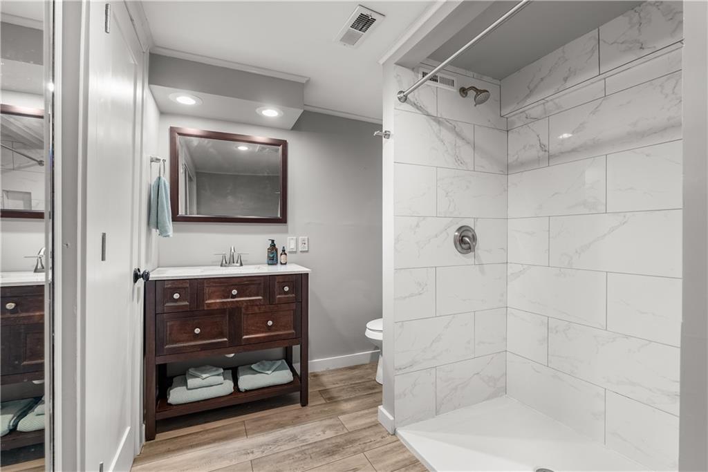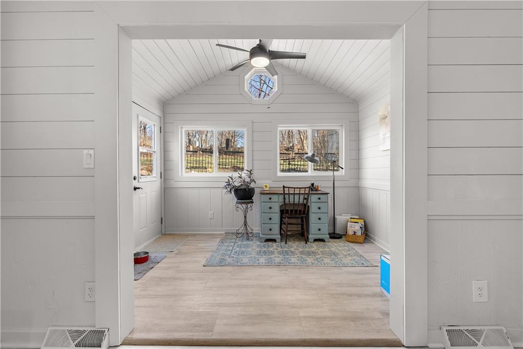 Come live the lake life in this gorgeous 2nd tier home! Enjoy the beautiful view of the lake from the large front porch and relax on the huge, private, treed backyard deck. Plenty of wild life to enjoy around the firepit area. This cozy updated home gives off a lovely beach vibe with adorable ship lap, open floor plan, fireplace, and plenty of storage room in the upstairs attic space. Vaulted ceilings, hardwood and LVP throughout, and the kitchen is a show stopper. Granite, kitchen island and all appliances stay with the home (including the washer and dryer in the oversized laundry room) and a bonus sunroom/office space right off the kitchen with an outstanding view of the backyard. The finished lower level offers a fireplace and full bathroom - could easily be a 4th bedroom area. Roof age 8 years, HVAC 4 years new, hot water tank 3 years new and all suggested foundation work has been completed (see supplements). Completely move-in ready so you can start enjoying the lake life while also enjoying nature in the privacy of your backyard! No dock registered to property but easy access to the lake right down the street.