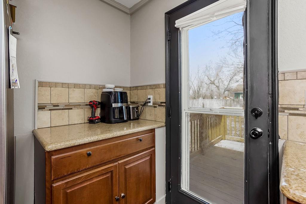 Spacious, easy one-level living at its best! The cozy family room welcomes you with a charming bay window, custom blinds, built-in shelving, and a warm fireplace—perfect for relaxing evenings at home. Entertain with ease in the large formal dining room, featuring classic wainscoting, durable wood-look flooring, and a ceiling fan for added comfort. The open kitchen is a standout with granite countertops, abundant cabinetry, stainless steel appliances, and a pantry for extra storage. The private primary suite is thoughtfully positioned on one side of the home, offering a peaceful retreat with its own ensuite bath and an oversized walk-in closet with stylish barn door. All bedrooms include walk-in closets, ceiling fans, and blinds—plenty of space and comfort for everyone. The third bedroom even offers a bright bonus sitting room or play space filled with natural light. A second full bath features tile flooring and a convenient shower/tub combo. You’ll also love the functional laundry room just off the kitchen, complete with additional pantry space and access to the cellar. Step outside to a HUGE fenced backyard that feels like it goes on forever—ideal for pets, play, or entertaining—plus a spacious deck ready for grilling season. Car enthusiasts, hobbyists, or small business owners will appreciate the attached 1-car garage AND the impressive 768 sq ft workshop next door, complete with a 2-car garage door, electricity, and a 10x10 covered entry. Bonus: Brand new roof! All of this sits on a desirable corner lot—giving you space, flexibility, and room to grow.