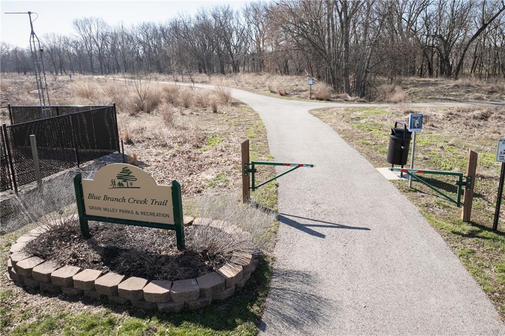Location! Location Location! This well-maintained 3-bedroom, 2-bath ranch offers the ease and comfort of true one-level living. Nestled in the back of a quiet subdivision, this home offers a peaceful setting with minimal traffic and is within walking distance of Grain Valley Schools. The home features a 2 year old roof, low-maintenance exterior with durable vinyl siding and the convenience of main-level laundry. The finished basement expands your living space with a versatile layout that includes a rec room with a bar and a pool table, a family room that is perfect for movie nights and a bonus room that can serve as a home office, gym, or flex space. The basement is already stubbed for a future half bath, offering additional potential. Step outside to a large, level, fully fenced backyard with a newer covered deck (maintenance free decking)—an ideal space for relaxing or hosting guests. With no backyard neighbors and direct access to the scenic/paved Blue Branch Creek Trail, you’ll enjoy added privacy and a peaceful outdoor setting. This solid well-maintained home is ready for your personal touch, offering a great opportunity to add your own style through cosmetic updates. The seller is selling "as-is" with inspections welcomed.
