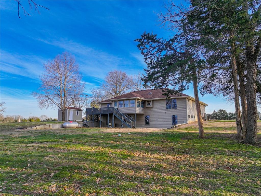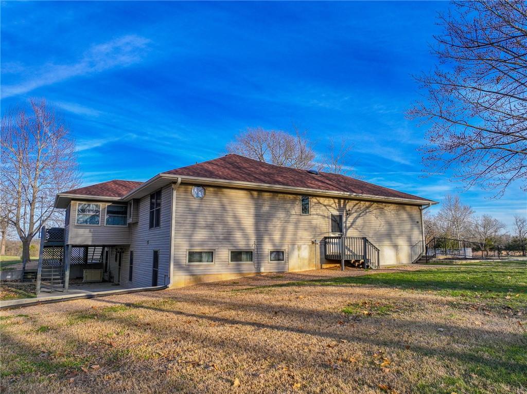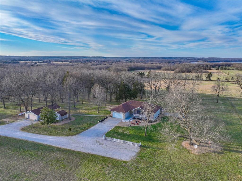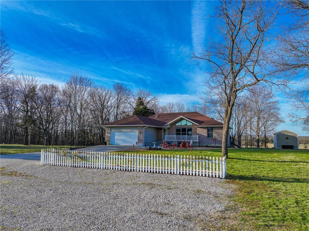 Custom Built Home for sale Hickory County MO Tucked away in the quiet countryside of Flemington in Hickory County, Missouri, this exceptional 4,300 sq ft custom built home offers the perfect blend of comfort, privacy, and functionality on 13.5± scenic acres. Built in 2002, the property features 6 spacious bedrooms and 3 full bathrooms, along with a fully finished walkout basement complete with a secure storm room. Inside, you'll find quality finishes throughout including granite countertops, hardwood floors, a bright sunroom, double oven, central vacuum system, and smart thermostats for modern convenience. The home is efficiently powered with ground source geothermal heating and cooling, backed by a generator and supported by two propane tanks, all serviced by a private well and septic system. A new impact-resistant roof installed in 2025 adds peace of mind for years to come. Outside, this property truly shines for those seeking space and versatility. A shop with concrete floors and electric, multiple sheds, two carports (including one with RV electric and sewer hookup), and a chicken coop provide endless opportunities for hobby farming or storage. The automatic front security gate ensures privacy, while the established fruit trees--apples, plums, cherries, figs, and grapes--add both beauty and function to the land. Located in the Wheatland School District and just a short drive to a Pomme de Terre Lake boat ramp, this property is ideal for outdoor enthusiasts, full-time living, or a private retreat.