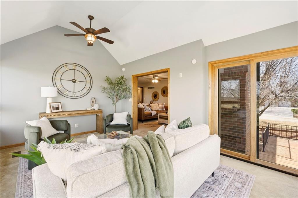 Looking for a peaceful retreat? Located at the end of the street where neighborhood meets acreage. Views of the land for miles and miles. This charming home is perfectly set against a serene backdrop of open land, a tranquil pond, and mature trees, offering a true sense of calm and privacy. Enjoy the views year-round from the beautiful four-season room, where nature becomes part of your everyday living. Inside, you’ll find an inviting living room anchored by a lovely fireplace, perfect for cozy evenings. The fabulous kitchen shines with stainless steel appliances, granite countertops, and light, bright white cabinetry—and all appliances stay with the property for added convenience. New flooring enhances the entry, kitchen, and dining areas, while new designer carpeting on the stairs adds an upscale, cozy touch. The finished lower level provides a second living space along with a full bath, offering flexibility for guests, a home office, or recreation. All bathrooms have been updated with today’s stylish finishes. Step outside to a spacious deck overlooking the picturesque landscape, or relax on the welcoming front patio, enjoy stunning sunsets! So close to Smithville Lake where 7,190 acres lake offers camp grounds, boating, marina, fishing, swimming, and so much more! This home is truly special. Located in the highly rated, Smithville School District! So much packed in one location!