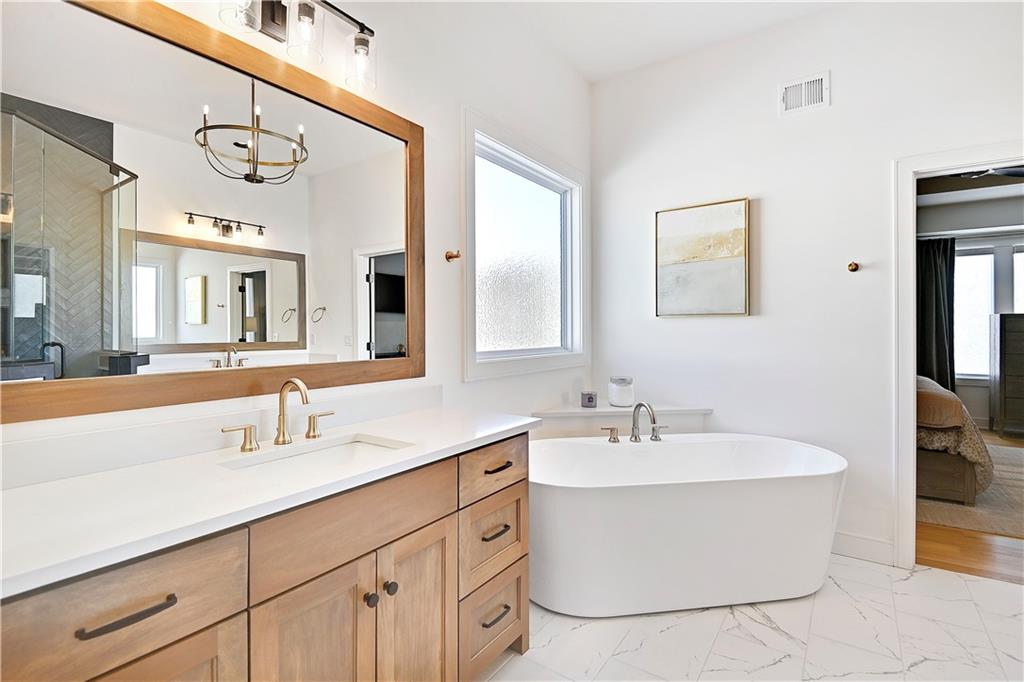 Welcome to an extraordinary 1.5-story estate where refined design and elevated living converge. This stunning 5-bedroom, 5.1-bathroom residence showcases impeccable craftsmanship and thoughtful architecture, offering the perfect balance of elegance and everyday comfort. From the moment you enter, you’re greeted by soaring ceilings, an abundance of natural light, and high-end finishes throughout. The open-concept floor plan flows seamlessly through expansive living and entertaining spaces, accentuated by custom window treatments and designer touches at every turn. At the heart of the home lies a chef’s dream kitchen, appointed with quartz countertops, a porcelain farmhouse sink, pot filler, upgraded stainless steel appliances, an oversized island, and a walk-in butler’s pantry — ideal for hosting on any scale. The main-level primary suite is a true sanctuary, featuring a spa-inspired bath and a custom-designed walk-in closet system. A cozy great room with fireplace, formal dining room, private office, and a mudroom with built-in cabinetry complete the main level. Upstairs, you’ll find a spacious loft and three well-appointed secondary bedrooms — each with its own ensuite bathroom, including an expanded guest suite. The fully finished lower level is an entertainer’s paradise with a fifth bedroom and bath, wet bar with porcelain tile, a wine cellar, fireplace, and a versatile recreation area. Step outside to a serene, covered and screened-in deck overlooking the beautifully landscaped, fenced yard — perfect for outdoor living and entertaining. Additional luxury upgrades include: Wide-plank upgraded flooring in the primary suite, Custom solid-core doors throughout, Built-in speaker system (great room, kitchen, lower level, deck), Epoxy-coated garage flooring and additional parking pad and Custom concrete grilling station. No detail has been overlooked in this exceptional residence. Don’t miss the opportunity to call this remarkable property home.