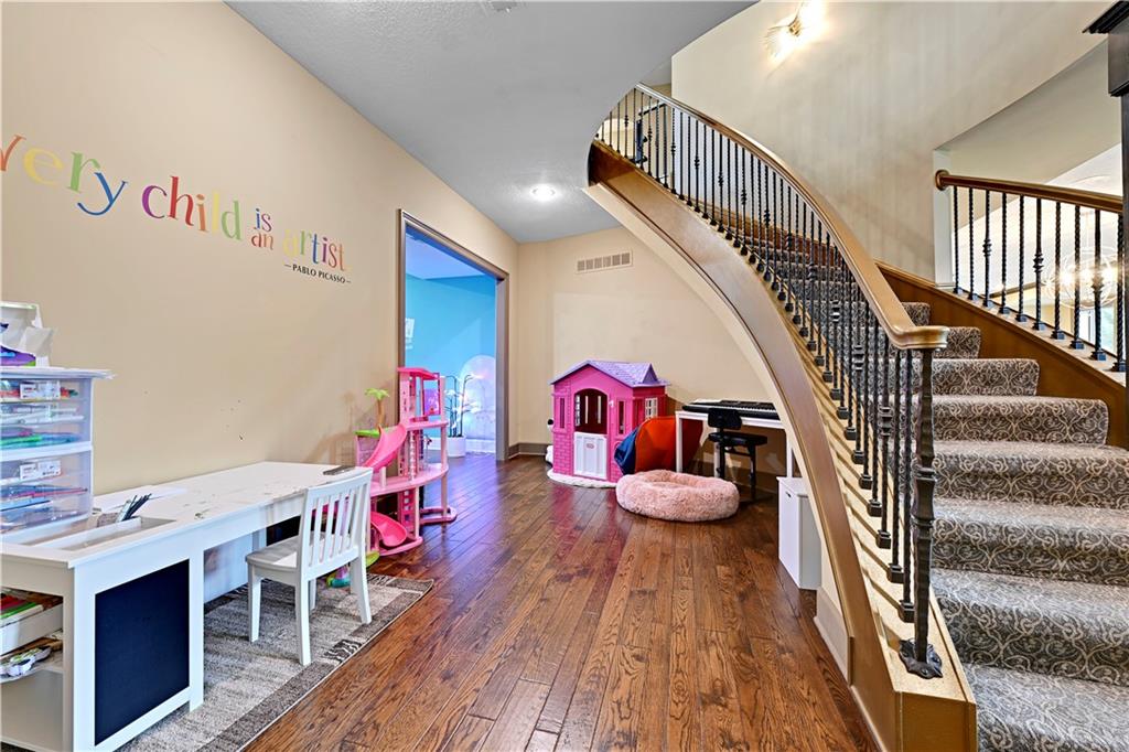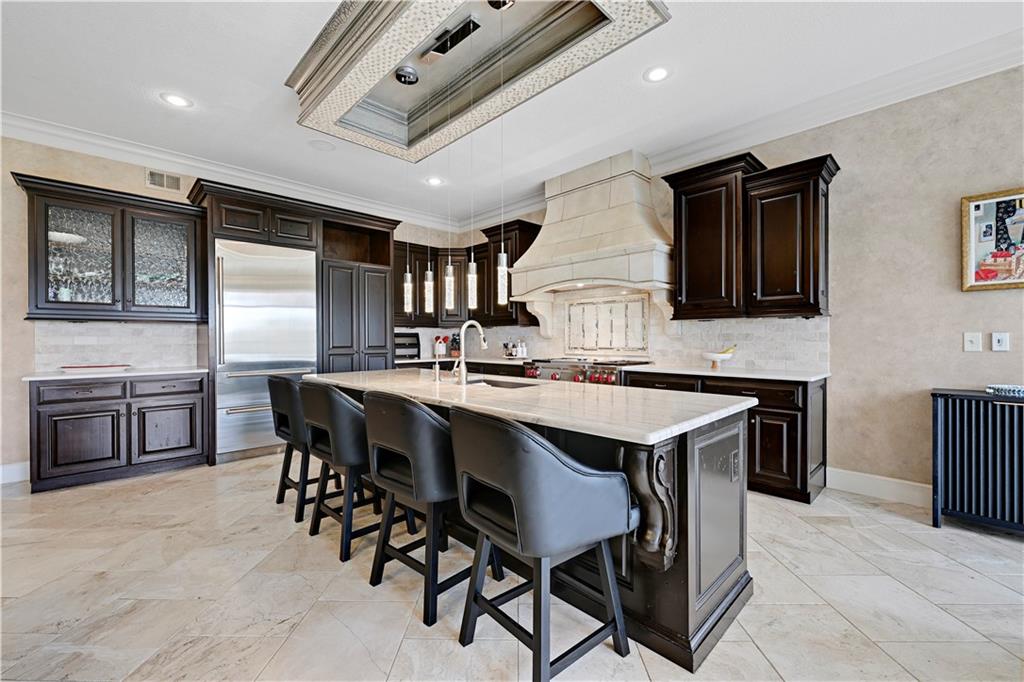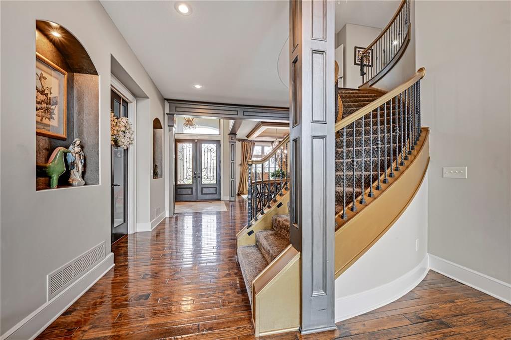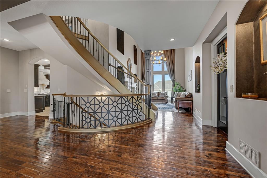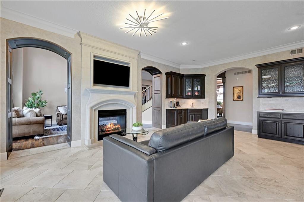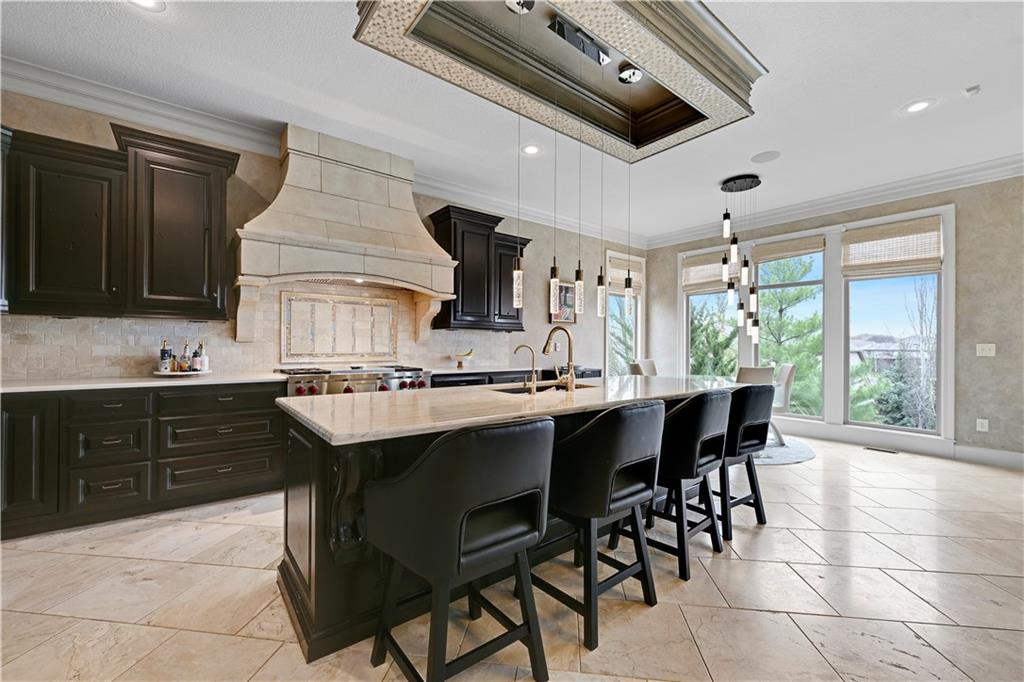Experience elevated living in this exceptional, one-of-a-kind residence designed for unforgettable family living and effortless entertaining. Every detail has been thoughtfully curated to impress, from the resort-style outdoor retreat to the high-end finishes throughout all three levels. Step outside to your private oasis featuring a stunning in-ground gunite saltwater pool, an oversized spa, and lush, professionally designed landscaping—perfect for relaxing or hosting gatherings. Inside, the walk-out lower level is an entertainer’s dream, complete with a full theater space, a sophisticated bar, and a dedicated kids’ movie and playroom. The heart of the home is a chef’s kitchen equipped with top-tier appliances, ideal for both everyday living and upscale entertaining. Luxurious materials such as travertine, marble, and natural stone add elegance and timeless appeal throughout. Modern convenience meets refined design with advanced home automation, including motorized shades, a seamless whole-home audio system extending to outdoor spaces, and beautifully appointed smart bathrooms with cutting-edge features. Situated on a quiet, family-friendly cul-de-sac, this home offers a rare combination of privacy, security, and community charm. A striking floating staircase serves as a dramatic architectural centerpiece, while the home’s distinction is further elevated by its feature as a showcase property in KC Homes & Style Magazine. This extraordinary custom-built estate is truly a standout—where luxury, comfort, and lifestyle come together.