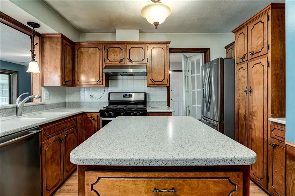Welcome to this beautifully situated and generously proportioned side-to-side split, offering both comfort and versatility. The home features three distinct living areas, a formal dining room, and a well-appointed kitchen complete with stainless steel appliances and granite countertops. Updated flooring throughout adds a fresh, modern touch, while the roof—just four years old—provides added peace of mind. Set on a spacious, tree-lined lot, this property offers a serene backdrop for everyday living. Enjoy quiet mornings with coffee or unwind in the evening while taking in sunset views from the porch. The oversized garage accommodates up to four vehicles with ease, or provides ample space for a boat, lawn equipment, and additional storage. A sub-basement further enhances the home’s functionality, offering even more room to suit your needs. With its expansive layout and inviting features, this home is move-in ready and waiting for its next owner.