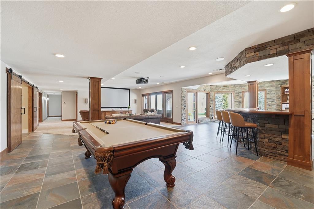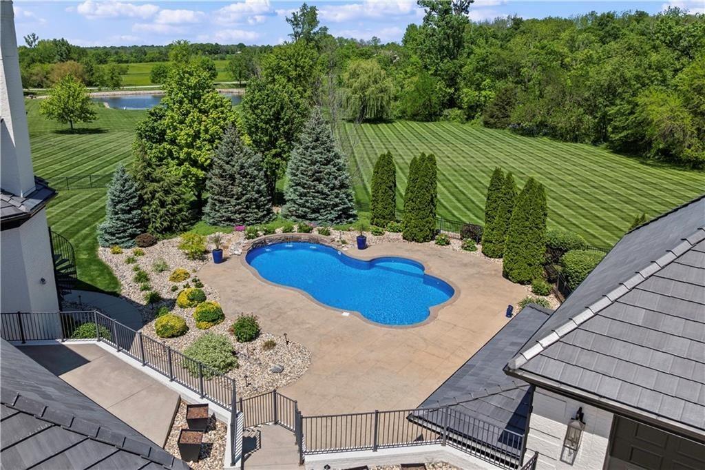 Luxury Blue Valley Estate on Nearly 10 Acres | Ideal for Entertaining | Motivated Sellers. Luxury estate on nearly 10 acres in southern Johnson County, located in the Blue Valley School District. Nearly 7,500 sq ft thoughtfully designed for both entertaining and flexible living. Entertaining highlights include a gourmet kitchen, screened lanai, and a finished walk-out lower level with home theater, custom bar, and basement kitchenette. The resort-style backyard features a heated saltwater pool, pool house, and outdoor kitchen with hibachi grill—ideal for hosting year-round. The property also features a private rear garage behind the pool house-offering functional space for recreational vehicles, equipment, or a fully equipped workshop. Family-friendly and versatile, the home offers a main-floor primary suite, upstairs bedrooms with bonus loft/playroom space, and multiple bedroom suites throughout. The layout supports multi-generational living, extended guests, or private work-from-home needs with excellent separation and privacy. A rare six-car garage, new $100,000 ceramic tile roof, HVAC updates, and a location just a few miles from Overland Park complete this exceptional property.