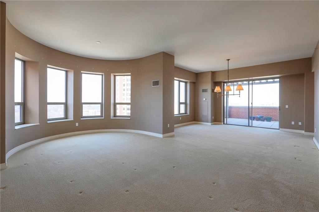 Bring your designers and decorators to this beautiful 10th floor canvas. Stunning 180 degree views overlooking the Plaza, Loose Park and downtown KC. This 3 bedroom Kirkwood condominium offers 2359 square feet, an open kitchen, family room, dining room and living room. One of the larger top floor condo units. It also features an 18' x 14' balcony with north and west views of the city. Kirkwood offers an amenities package with pool, fitness center, conference rooms, community room with kitchen and beautiful gardens outside. 2 inside parking spaces. A storage room. 24/7 monitored front desk.