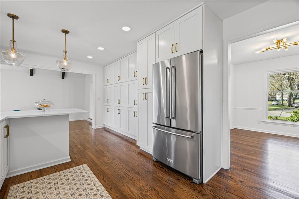 Beautifully renovated side-to-side split, sitting on a large corner lot in the desirable Kenilworth neighborhood! This home has been thoughtfully updated throughout. You'll find a bright expanded kitchen complete with quartz countertops, abundant cabinetry, and a smart layout designed to make cooking easier. Kitchen opens to the light filled Family Room, making entertaining easy. The Living, Dining and Family Room areas flow perfectly and offer flexible use options to suit your lifestyle. Gorgeous refinished hardwood floors run throughout the home, creating a warm and cohesive feel. All bathrooms have been fully renovated with modern finishes and a timeless, pleasing color palette. The primary bedroom features double closets for ample storage & a large ensuite bath, hard to find it the neighborhood. Large Attic Space & a spacious +1400 SF Basement provides unlimited possibilities. With Meadowbrook Park and its surrounds just steps away, you’ll experience exceptional walkability to restaurants, coffee shops, pubs, stores and more. Kenilworth is a wonderful neighborhood with a 4th of July Bike Parade and a Fall Octoberfest Cookout. Highlights & Features Beautiful Original Hardwood Floors, Brand New Commercial Water Heater, Circle Driveway, Extended Garage w/Storage Space, New 30 Amp Circuit added to garage, 2nd Sump Pump, Sprinkler System with Smart Control Panel. Located within the Shawnee Mission School District: Trailwood Elementary • Indian Hills Middle School • Shawnee Mission East High School Don't miss out on the opportunity to enjoy a beautifully updated home in a fantastic location! All Appliances Stay. Buyer's Agent to Verify Measurements, Taxes & Schools.