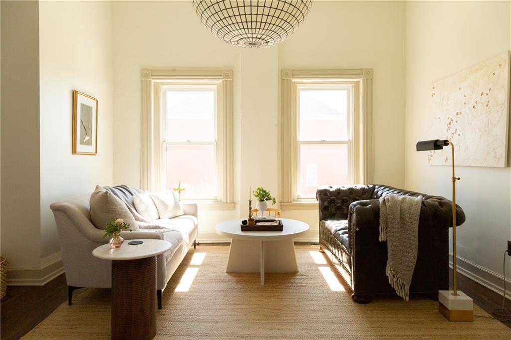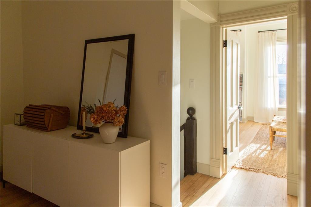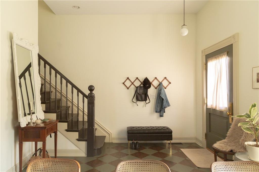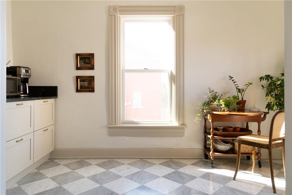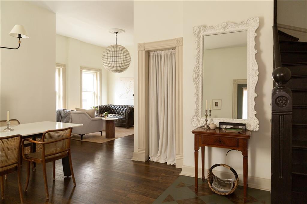 Buttery hardwood floors, tall ceilings, and natural light give this updated Victorian its unmistakable character. An elevated, custom renovation brings clarity and refinement to the original architecture, pairing sculptural millwork, reclaimed elements, and exposed brick with carefully chosen details throughout. Living and dining spaces connect fluidly, comfortable for everyday life yet generous when entertaining. The kitchen reflects the same level of intention, with quartzite and soapstone countertops, well-appointed cabinetry, tailored brass hardware, walk in pantry storage, and a high-end appliance suite chosen for beauty and performance. Both full baths are equally well considered, featuring elevated fixtures, curated tile selection, and finely detailed hardware. An exquisite lighting collection adds warmth throughout, while custom Marvin windows frame leafy neighborhood views along historic Olive Street. Outdoor living is an extension of the home itself, including an inviting wrap around front porch and two spacious rear decks overlooking a rare double lot. A front entry garage and ample off-street parking provide everyday ease, while the full, unfinished basement offers expansive storage capacity. Recent updates to major systems and the roof add confidence, with a long-term tax freeze providing welcome financial ease. This polished home is located in downtown’s Upper East Side neighborhood of Pendleton Heights, a historic district known for its character, walkability, and strong sense of community.