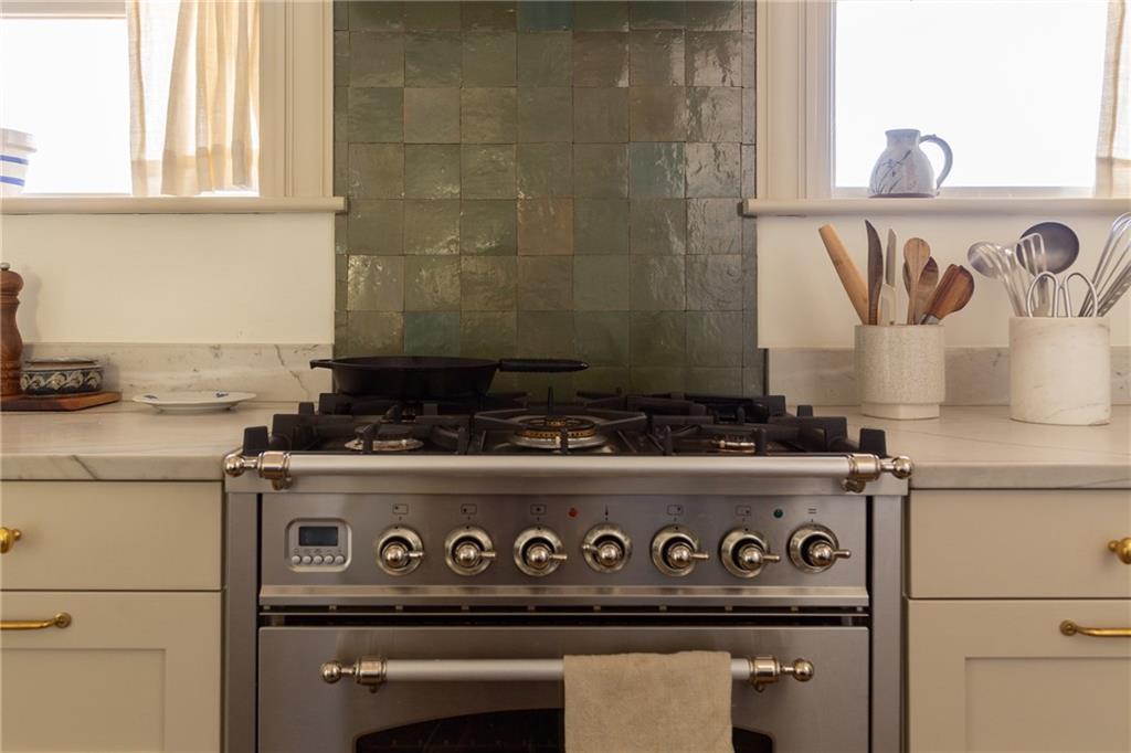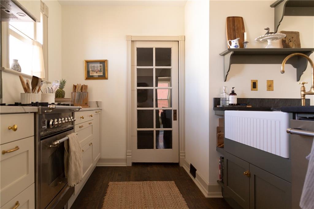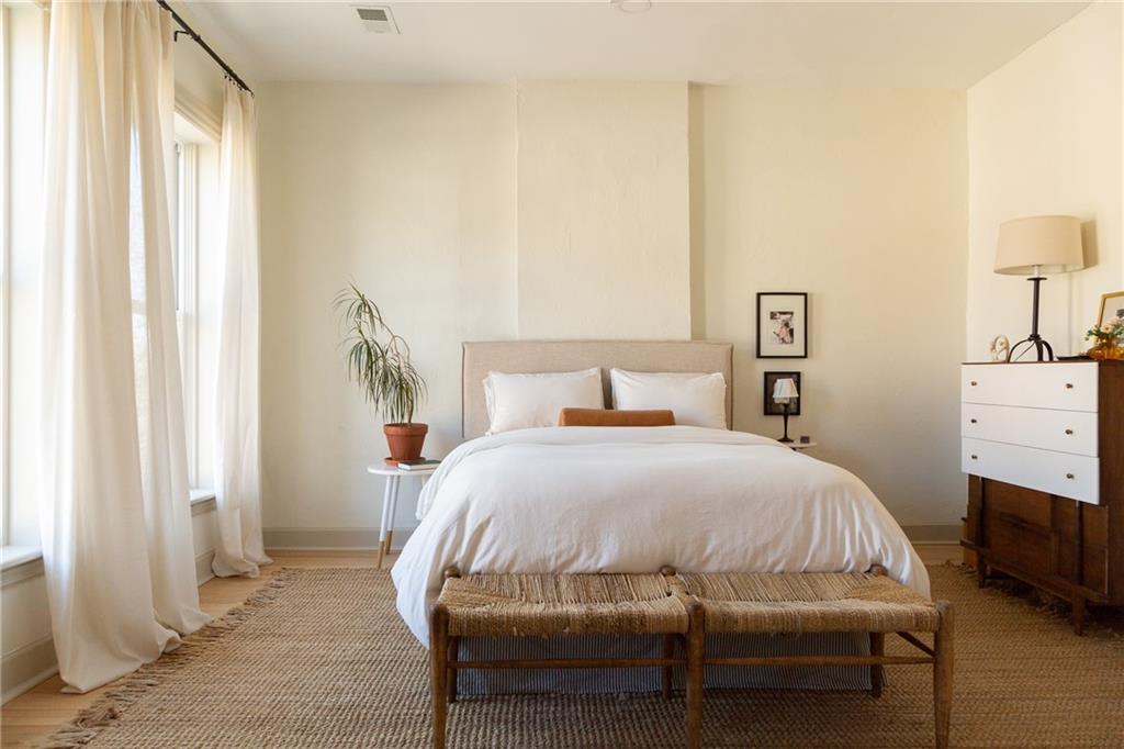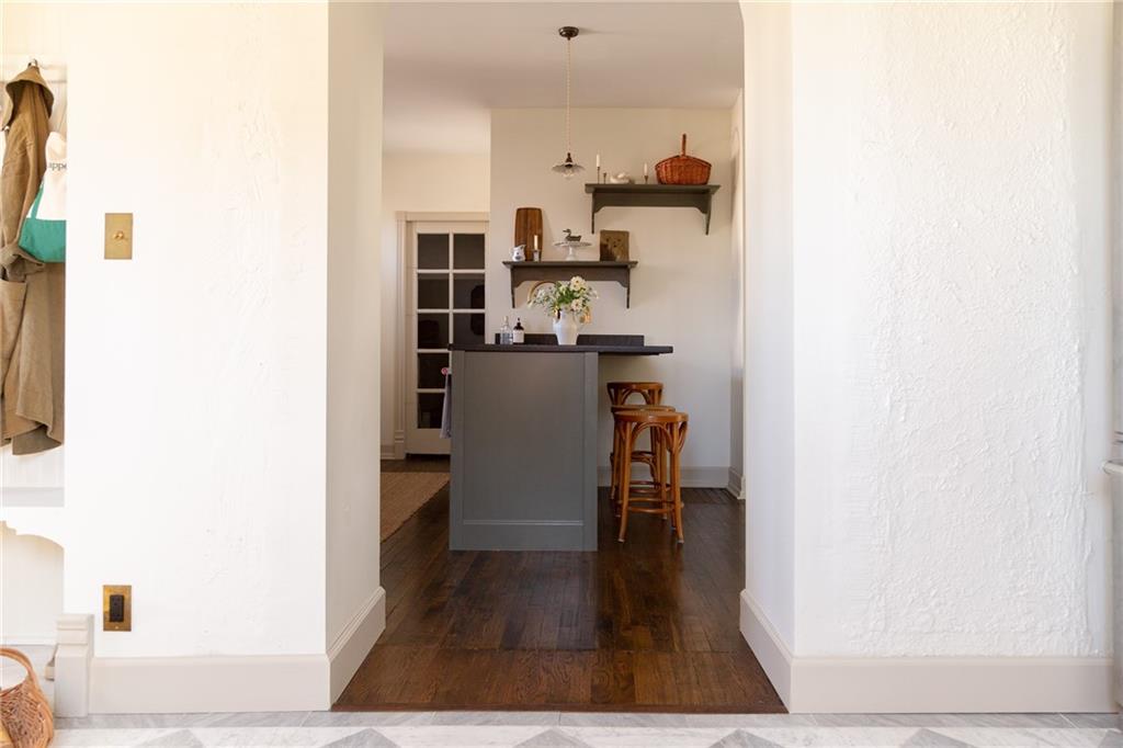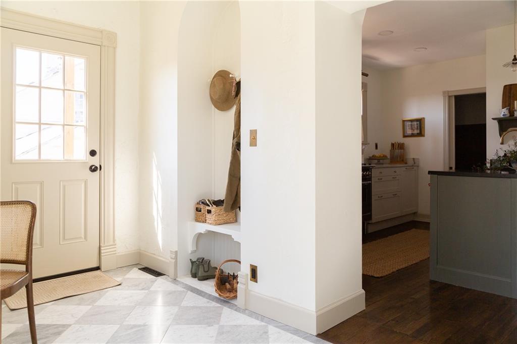 Buttery hardwood floors, tall ceilings, and natural light give this updated Victorian its unmistakable character. An elevated, custom renovation brings clarity and refinement to the original architecture, pairing sculptural millwork, reclaimed elements, and exposed brick with carefully chosen details throughout. Living and dining spaces connect fluidly, comfortable for everyday life yet generous when entertaining. The kitchen reflects the same level of intention, with quartzite and soapstone countertops, well-appointed cabinetry, tailored brass hardware, walk in pantry storage, and a high-end appliance suite chosen for beauty and performance. Both full baths are equally well considered, featuring elevated fixtures, curated tile selection, and finely detailed hardware. An exquisite lighting collection adds warmth throughout, while custom Marvin windows frame leafy neighborhood views along historic Olive Street. Outdoor living is an extension of the home itself, including an inviting wrap around front porch and two spacious rear decks overlooking a rare double lot. A front entry garage and ample off-street parking provide everyday ease, while the full, unfinished basement offers expansive storage capacity. Recent updates to major systems and the roof add confidence, with a long-term tax freeze providing welcome financial ease. This polished home is located in downtown’s Upper East Side neighborhood of Pendleton Heights, a historic district known for its character, walkability, and strong sense of community.