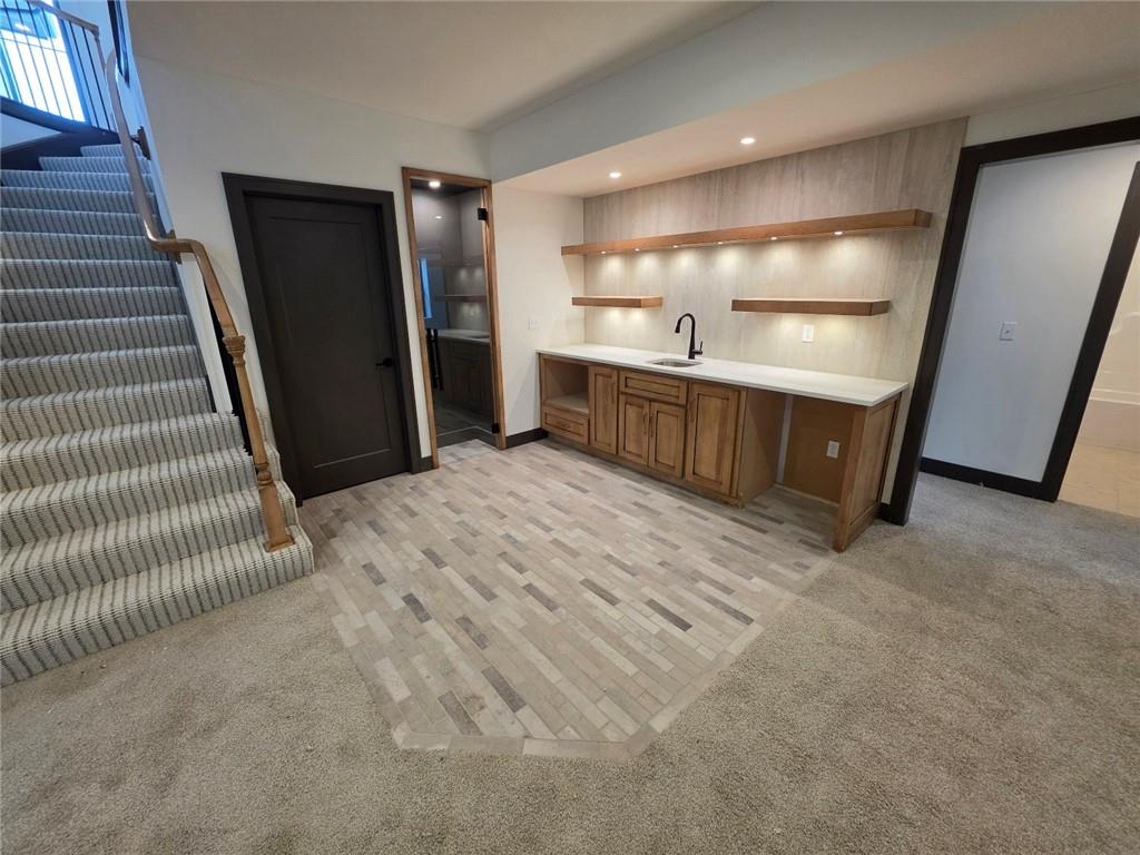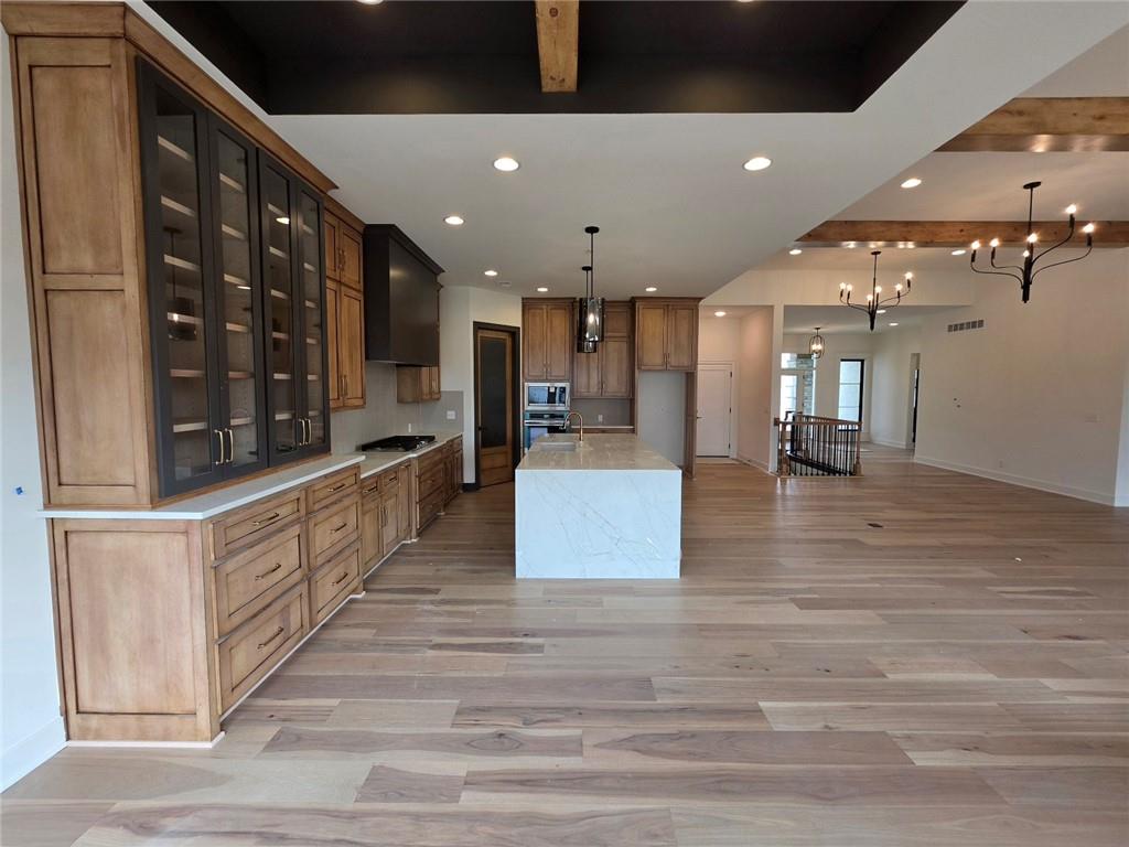 C&M Builders proudly introduces their stunning "Windsor" reverse 1.5-story plan to Prairie Canyon, Johnson County's newest maintenance-provided community. Conveniently situated just west of K-7 along College Blvd., this impressive model home (currently not for sale) welcomes you with a grand entry featuring a graceful curved staircase that opens to an expansive, light-filled great room, kitchen, and dining area. Highlights include a cozy corner fireplace, an oversized island, a generous walk-in pantry, and a well-appointed mudroom with ample storage. Step outside to a covered, deck—perfect for unwinding after a long day. The luxurious main-level primary suite boasts a custom walk-in shower and an enormous walk-in closet. A second bedroom (or flexible den/office) is conveniently located near the front entrance. The fully finished lower level offers exceptional living space, featuring a walk-up wet bar, a large family/entertainment/recreation area and two spacious bedrooms with a full bath.