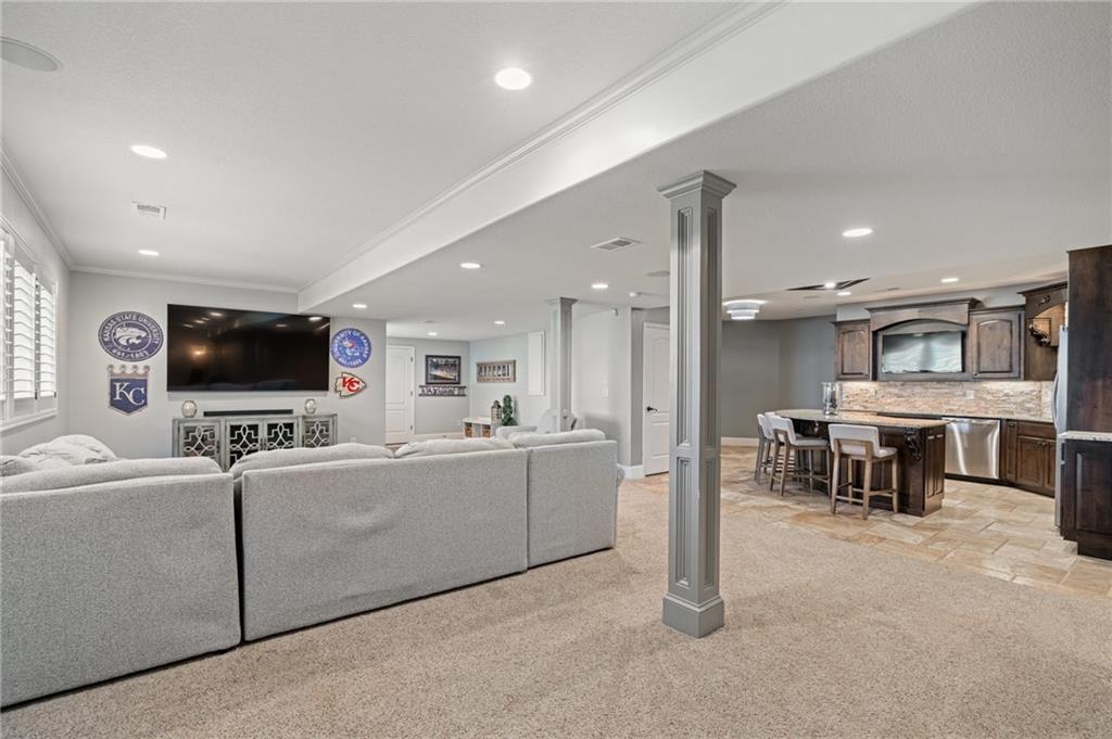 Pics coming soon. Welcome to this stunning 2-story home in highly sought after Woodland Reserve community in Lenexa! From the moment you arrive, the WOW factor is undeniable. This home has been beautifully updated and meticulously maintained with impressive attention to detail throughout. Step inside to discover gleaming hardwood floors that flow through the main level creating a warm and inviting atmosphere. The gorgeous kitchen is truly the heart of the home featuring modern finishes, ample cabinetry and granite counters w/generous space for cooking, gathering and entertaining. Work from home? Enjoy a quiet, private main level home office, perfect for productivity without distractions. After a long day, retreat to the spacious primary suite complete with a luxuriously updated primary bath designed for relaxation, offering stylish finishes and a spa-like feel. This home features 3 additional bedrooms providing comfort and flexibility for family and guests. The finished lower level is an entertainer's dream boasting an amazing bar area and plenty of space for movie nights, game days or hosting guests. Step outside to a professionally landscaped yard that enhances curb appeal and creates a beautiful outdoor setting. Enjoy time on the stamped concrete patio w/built in grill. The backyard sport court offers endless opportunities for recreation and fun. Car enthusiasts and eco-conscious buyers alike will appreciate the 3 car garage w/epoxy floors and EV charging power. Don't miss the built-in storage unit large enough to fit a golf cart (side of house). This exceptional home offers the perfect blend of luxury, functionality and standout features. (Did I mention plantation shutters throughout entire house?) Don't miss your chance to call this HOME!