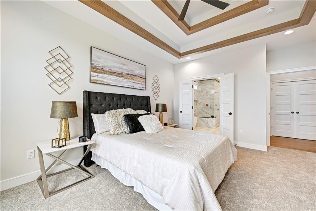 Introducing the Tuscany Reverse 1.5-story by Crestwood Custom Homes, perfectly positioned on a premium walkout lot backing to mature trees—offering beautiful, private views from nearly every window. This 4 bed, 3 bath home with 3,565 sq.ft. showcases an open-concept main level where the great room, kitchen, dining area, and sunroom flow seamlessly together, all filled with natural light. Vaulted ceilings with designer beam details and a floor-to-ceiling tile fireplace with floating cabinetry create a stunning and inviting main living space. The gourmet kitchen is complemented by a spacious prep pantry and features two ovens—one in the main kitchen and an additional oven in the prep pantry—ideal for everyday living and effortless entertaining. The primary suite offers a true luxury retreat with a spa-inspired bath, including floating vanities and an oversized zero-entry shower with dual heads and bench. The finished walkout lower level is built for entertaining, featuring a spacious rec room, front-and-back wet bar, and two additional bedrooms—one of which is oversized, making it perfect for a gym, yoga studio, or flexible living space. Thoughtful design, elevated finishes, and a serene wooded setting make this home a standout. Situated on Lot #55 in The Enclave at Manchester Park, this community offers a neighborhood pool, is within walking distance to the elementary school, and provides convenient access to everything you need. **Progress photos available now, other photos are of previously finished home.** (ECD: JULY 2026)
