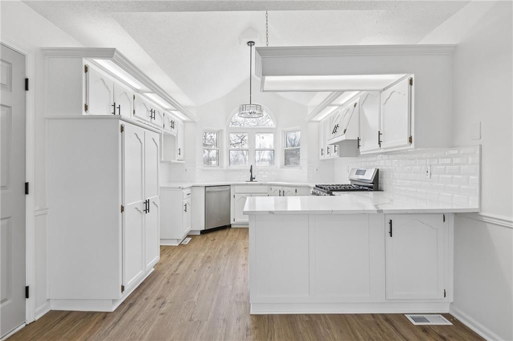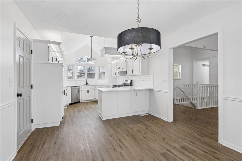 Great curb appeal, this home is also clean and move-in ready! Low maintenance vinyl siding exterior, great covered front porch, new luxury vinyl plank flooring throughout kitchen, dining and living rooms, new carpet in the bedrooms, vaulted ceiling in the living with a cozy fireplace, new light fixtures, freshly painted, new ceramic tile in bathrooms, main floor laundry, new quartz kitchen counters and much more. Seller is related to the listing agent. Taxes and square footage to be verified by buyer.