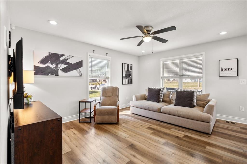 Don't miss this incredible opportunity! This newer home sits on a massive corner lot and offers the perfect blend of space, function, and style. Step onto the charming covered front porch into a bright, open layout filled with natural light and a clean, modern palette. The main level features three bedrooms and two full bathrooms, designed for comfortable everyday living. Downstairs you'll find a spacious family room, a fourth bedroom, and a large full bathroom - ideal for guests, entertaining, or additional living/play space. Outside is where the home truly shines... enjoy a huge driveway, deck, the corner lot and spacious yard, a shed, lots of green space! Located within walking distance to the middle school, this property offers convenience in a setting you'll love - where small town America shines and thrives in a slower pace of life and enjoyment! Consider the boxes checked, schedule youre showing ASAP!
