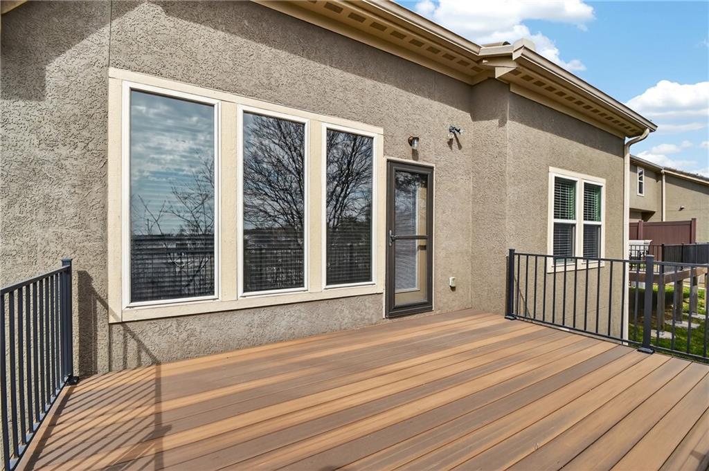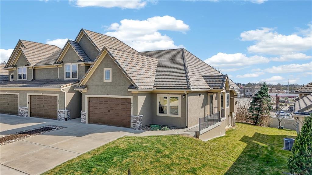 TRUE RANCH VILLA | CHAPEL RIDGE WOODS AT LAKEWOOD | MAINTENANCE-PROVIDED Discover refined main-level living in this 2019 built true ranch villa, perfectly situated in the Chapel Ridge Woods section of the master-planned Lakewood community. This "lock-and-leave" residence offers complete convenience with an HOA that manages lawn care, snow removal, and trash.The open-concept interior features an expansive great room anchored by a gas fireplace, flowing seamlessly into the kitchen and dining areas. The gourmet kitchen is a focal point, boasting an oversized granite island, custom painted cabinetry, and a walk-in pantry. Retreat to the primary suite, which includes a spacious walk-in closet, double vanity, and a modern walk-in shower.Property Highlights:Superior Build: Concrete & tiled maintenance free roof, stucco and stone-trim exterior, & high-efficiency insulation (R-49 ceilings R-19 walls). Main Level Living: Includes two bedrooms, two full baths, and a dedicated laundry room all on one floor. Equity Potential: The full daylight basement is already insulated and stubbed for a bath ready for your custom finish to add immediate square footage & value. Outdoor Space: Enjoy a large private deck overlooking the treed lot. Inground sprinkler system. World-Class Amenities: Full access to Lakewood’s 365-acre private lake, clubhouse, swimming pools, tennis courts, and walking trails.Experience the quality of a newer build with the established luxury of one of Lee's Summit's premier maintenance-provided neighborhoods.