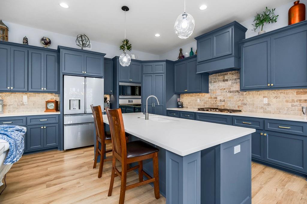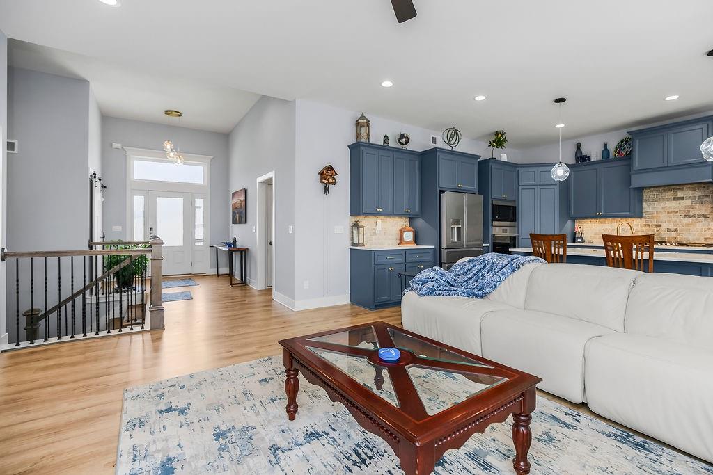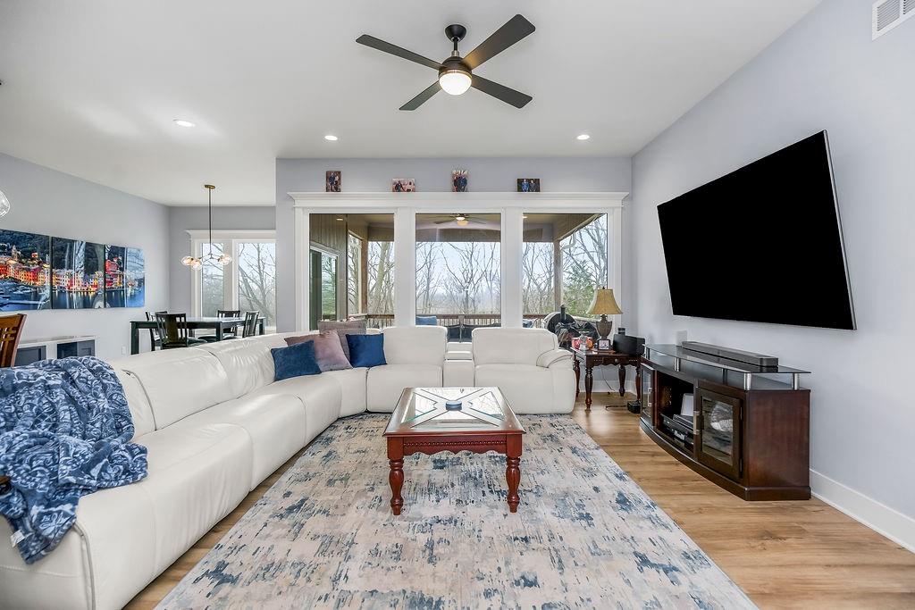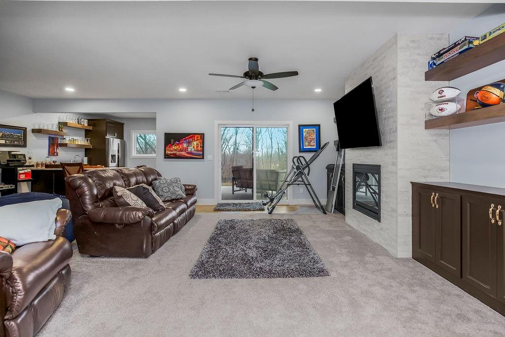 This exceptionally well-maintained home offers the perfect blend of privacy and convenience. Enjoy peaceful, treed views from the covered deck—your own private retreat right at home. The kitchen is a standout feature, showcasing beautiful cabinetry, granite countertops, a large island with seating, and an open layout ideal for both everyday living and entertaining. Wall-to-wall windows fill the home with natural light and capture the surrounding views. The finished walkout basement expands your living space with a wet bar/kitchenette and opens to a spacious patio beneath the deck—perfect for gatherings or relaxing evenings. Situated on approximately ¾ of an acre, this property offers a rare combination of country living with in-town amenities. The impressive 30x45 outbuilding provides endless possibilities for storage, hobbies, or workspace.