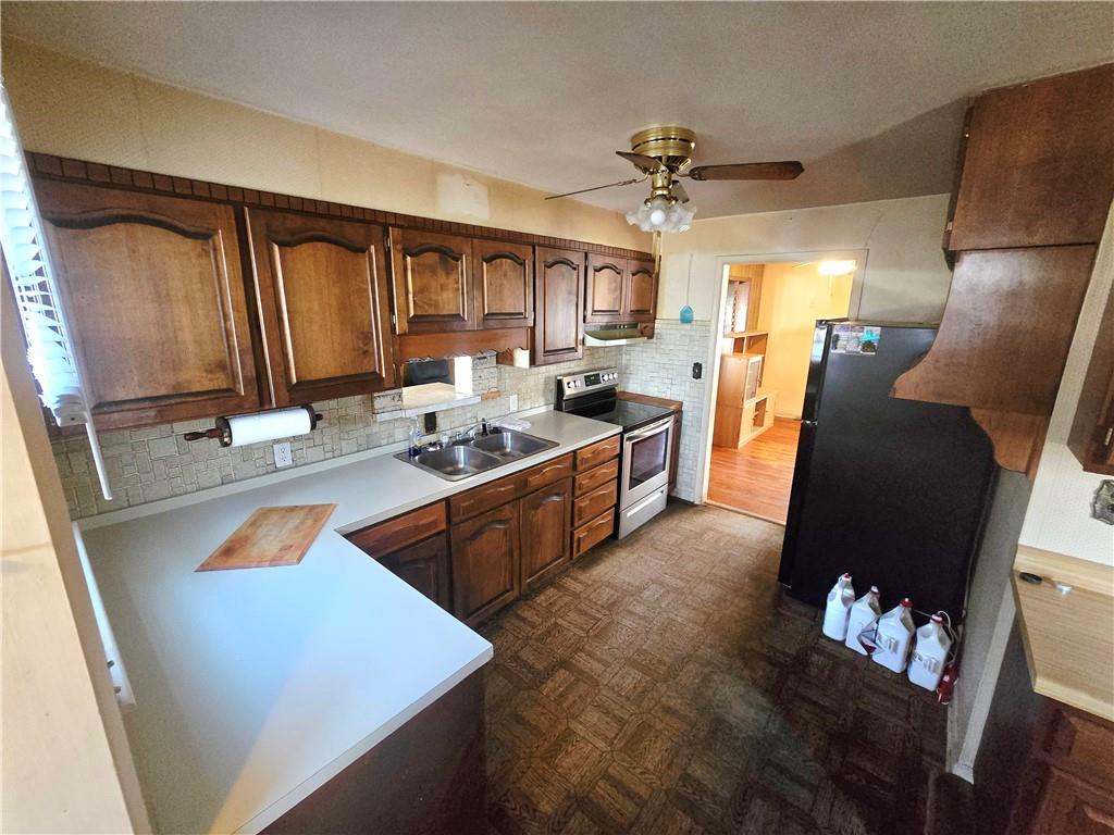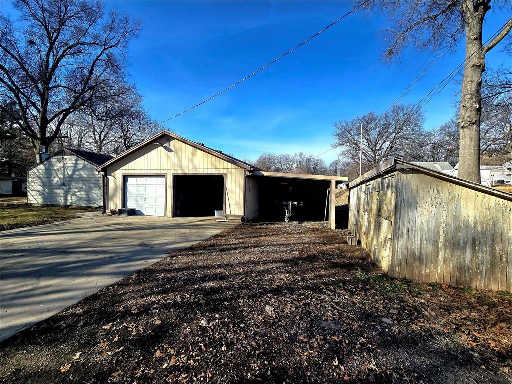 Welcome to this 2-bedroom, 1-bath home located in a peaceful neighborhood in Tarkio! This property presents a fantastic opportunity for first-time homebuyers, those seeking single-level living, or investors looking to add their personal touch. Inside, you’ll find a functional layout with a bonus rec room featuring a built-in bar area — perfect for entertaining or creating your own cozy hangout space. Some brand-new flooring is already on site and ready for the new owner to install, giving you a head start on updates. The home could use some paint, finishing of hardwood floors, and cosmetic refreshing, but the potential is definitely there! All appliances stay, making this an easy move-in option. Outside, enjoy a fenced-in yard ideal for pets or kids, plus a two-car detached garage AND a carport for extra covered parking. Affordable, functional, and full of opportunity — this is a great starter home in a peaceful Tarkio location. Schedule your showing today!