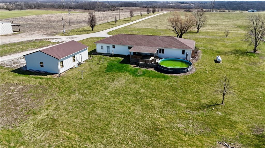 Don't forget to pack your bathing suits when you are ready to move into this four bedroom, two bath home. Enjoy the ease of single level living with room to roam outside. Situated on 7.49 acres and complete with a shop (concrete flooring and electric), this home has it all. After spending the day out on your land, tinkering in the shop, or lounging poolside, you can access the home from your covered back deck. The layout flows beautifully throughout this home. You will have plenty of space to entertain in your spacious kitchen featuring solid wood cabinets and ample storage as well as in your large living area. The primary bedroom offers a walk-in closet and private bath. It's time to make this house your home.