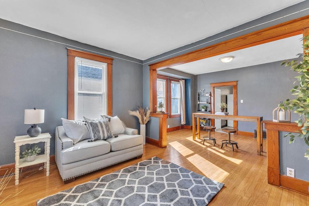 Charming, move-in ready 2-bedroom home that is well-maintained, offering a warm, inviting feel with plenty of character throughout. Ideally located in a great centralized area, this home is close to the Belt Highway and offers easy access to numerous nearby walking trails. The main living areas showcase original hardwood floors and beautiful woodwork, adding timeless appeal. The bathroom has been tastefully updated with ceramic tile flooring and a modern tiled shower. The kitchen features a spacious eat-in area, along with a separate formal dining room—perfect for both everyday living and entertaining. Step outside to enjoy the adorable covered front porch overlooking the Moila Country Club golf course, an ideal place to sip your morning coffee. The property also includes a new woodprivacy fence, creating a secure and spacious yard perfect for pets or children to play. Additional highlights include a detached garage and a large, open basement offering excellent storage space.
