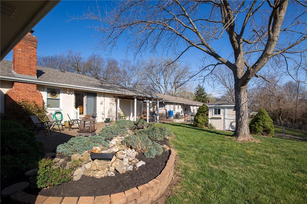 Gorgeous Raytown 4-bedroom, 3 full bath true ranch offering the ease of main-level living with thoughtful accessibility features throughout! Wide hallways and doorways provide wheelchair access to most rooms, plus a convenient ramp from the garage for seamless entry. This well-maintained home features thermal windows throughout, a new roof and window screens (June 2025), and a high-efficiency geothermal heat pump for year-round economical comfort. The water heater is just 2 years old. The primary suite includes twin vanities, a beautifully updated shower (2020) and a relaxing jetted tub. The finished lower level boasts a huge family room, new carpet (2024), a 5th non-conforming bedroom, and a full bath with a bathtub—perfect for guests or additional living space. Step outside to your patio from three different spots of this house. Enjoy the beautifully landscaped backyard complete with a water feature, covered patio, brick patio, and a shed that matches the home. Additional updates include a new driveway and added insulation (2010) Plus Garage floor coating,  This home truly has it all —comfort, space, accessibility, and thoughtful updates— Quick easy access to 350 HWY  too!  This one is ready for you to move right in call to see it today!