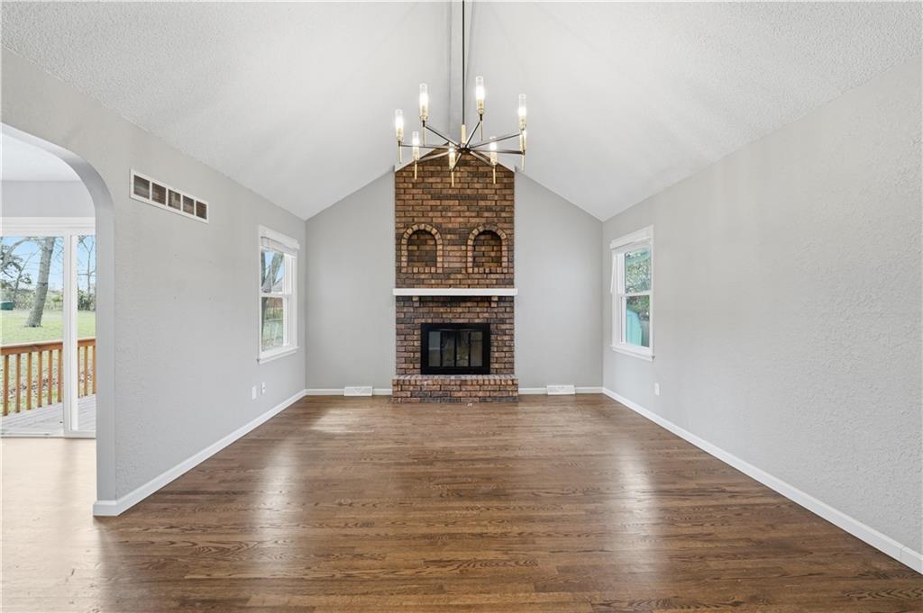 This beautifully updated home combines comfort, style, and an unbeatable location. This move-in-ready property features a 1-year-old roof and an inviting interior with hardwood floors throughout the main level and modern paint colors. The updated kitchen is a standout, offering granite countertops, stainless steel appliances, freshly painted white cabinetry, a pantry & a cozy breakfast nook—perfect for everyday living and entertaining. A formal dining room on the main level provides additional space for gatherings and special occasions. The great room impresses with vaulted ceilings and a classic brick fireplace creating a warm and open gathering space. Retreat to the private master suite with its own bathroom + all bedrooms are equipped with ceiling fans for added comfort. The finished basement adds additional living space complete with a second brick fireplace—ideal for a media room, recreation area or home office. Step outside to enjoy a private, treed backyard with no homes directly behind, offering peace and privacy. The property backs to the local middle and elementary schools adding convenience while maintaining a serene setting. Located down the street from Pleasant Lea Park where you’ll have easy access to walking trails, tennis courts, and large playground, making it perfect for outdoor enthusiasts. With thoughtful updates, versatile living spaces, and a prime location, this home offers exceptional value in one of Lee’s Summit’s most desirable areas.