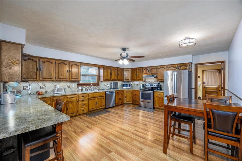 Great New Property in Frontenac, KS. Great Semi-open floor plan. Spacious Living room features a wonderful fireplace with like new wood burning insert. Living room opens to the Kitchen, Dining room and home office area. Living room also opens to back yard with fantastic new patio and pergola (stays). Kitchen is huge, with loads of countertop space, custom tile backsplash and real wood cabinets for super storage. All newer stainless steel appliances will stay with property. Kitchen sink window looks out to backyard. All of the bedrooms in the home are spacious with great closet storage. Hall bath has great oversized counter top and beautifully tiled tub/shower combo. Large Laundry / bathroom combo is conveniently located off the garage and back entrance to the home. The back yard is fenced with 6 tall privacy fence and is a great space from family and outdoor living. Sellers have done many updates including an amazing new oversized garage driveway, New sidewalk to back yard and new concrete patio. The garage is oversized with with great work bench and built in cabinet storage. It also has super useful emergency generator hook ups. HVAC was replaced in 2021 and water heater replaced in 2022. Fireplace Chimney has been repaired looks great on the home. Sellers added a reverse osmosis water system to kitchen and refrigerator and ice maker. Sellers added six inches of blown in insulation too. Be sure to check out this great quality well maintained Frontenac home.