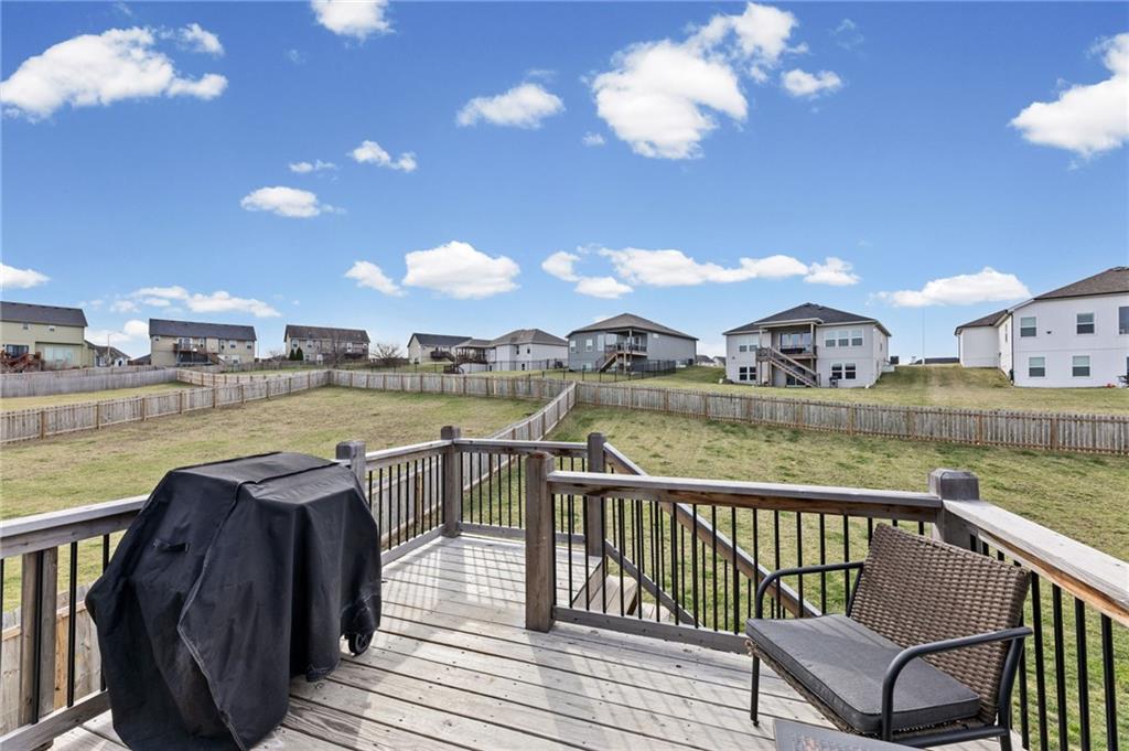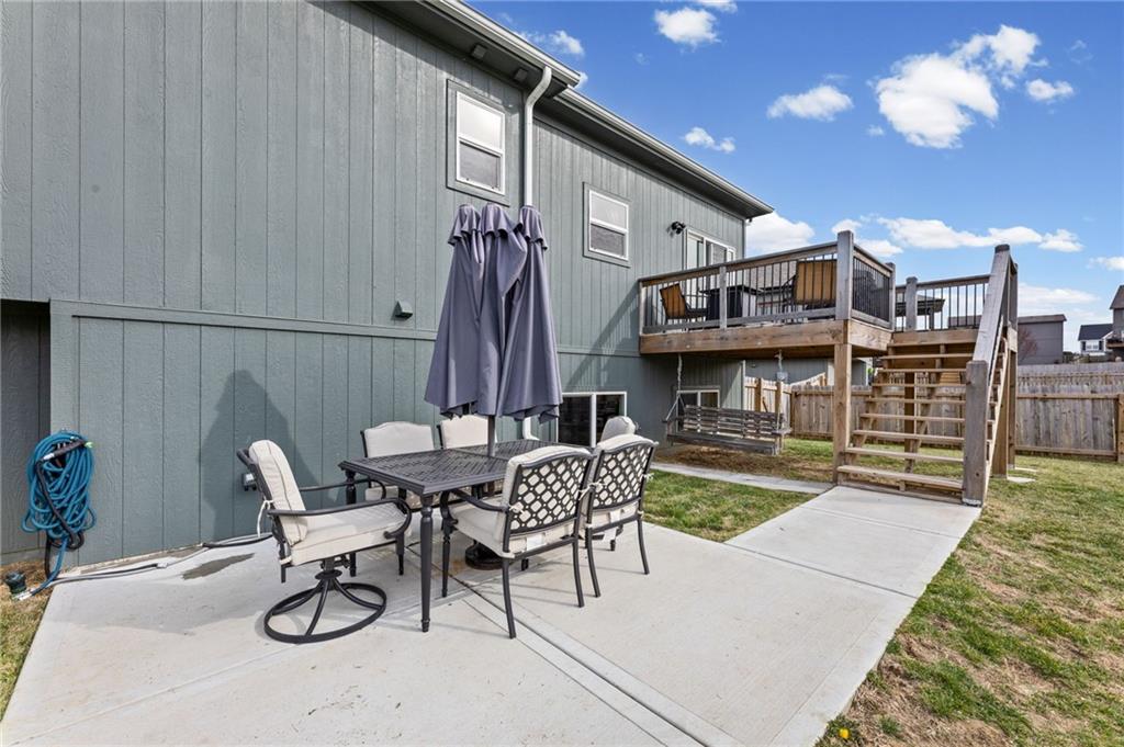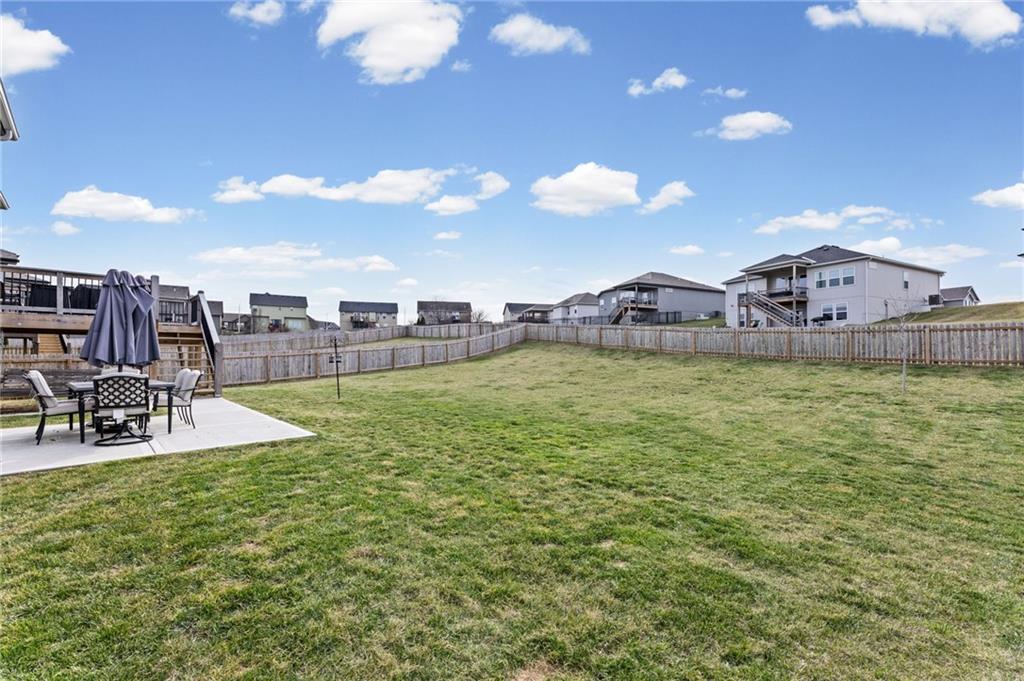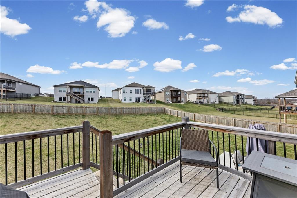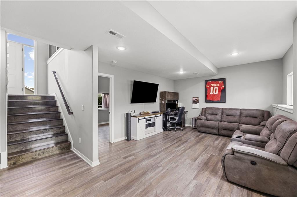 Better than new in Lakes at Hunters Glen! Built in 2023, this 4-bedroom, 3-bathroom home has already been elevated beyond builder grade. You’ll love the seamless wood-patterned vinyl flooring that flows throughout the home—no carpet, just clean, cohesive style and easy maintenance. The open layout offers the perfect balance of everyday living and entertaining, while the second living area downstairs provides a flexible space for a media room, playroom, or guest retreat. Step outside to a fully fenced backyard featuring a wooden fence, added stairs from the deck and an extra added concrete patio - making outdoor living more accessible, functional, and enjoyable from day one. Car enthusiasts, hobbyists, or anyone needing extra storage will appreciate the spacious 3-car garage. Located in the Liberty School District with quick highway access to I-35 and I-435. Thoughtfully cared for, almost-new and move-in ready, this home offers both comfort and convenience.