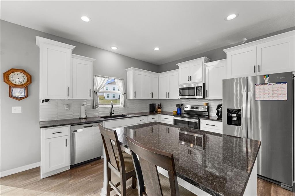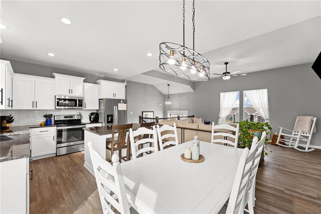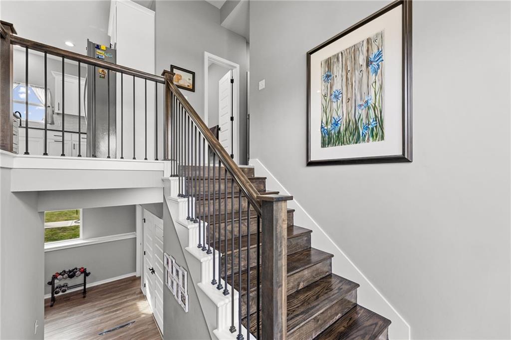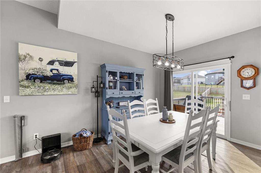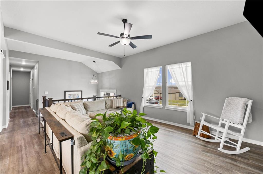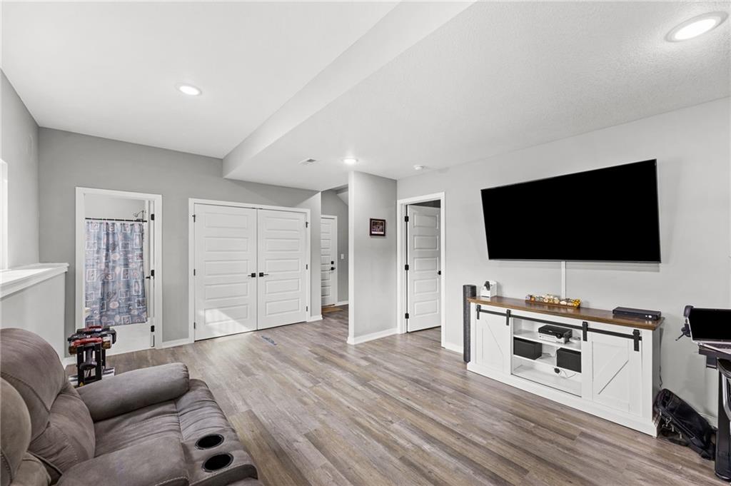 Better than new in Lakes at Hunters Glen! Built in 2023, this 4-bedroom, 3-bathroom home has already been elevated beyond builder grade. You’ll love the seamless wood-patterned vinyl flooring that flows throughout the home—no carpet, just clean, cohesive style and easy maintenance. The open layout offers the perfect balance of everyday living and entertaining, while the second living area downstairs provides a flexible space for a media room, playroom, or guest retreat. Step outside to a fully fenced backyard featuring a wooden fence, added stairs from the deck and an extra added concrete patio - making outdoor living more accessible, functional, and enjoyable from day one. Car enthusiasts, hobbyists, or anyone needing extra storage will appreciate the spacious 3-car garage. Located in the Liberty School District with quick highway access to I-35 and I-435. Thoughtfully cared for, almost-new and move-in ready, this home offers both comfort and convenience.