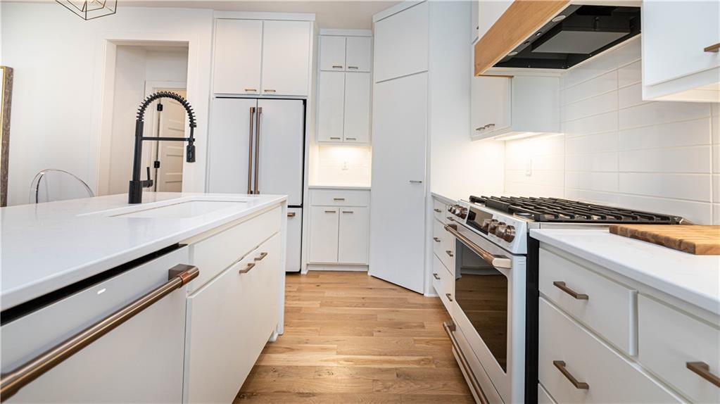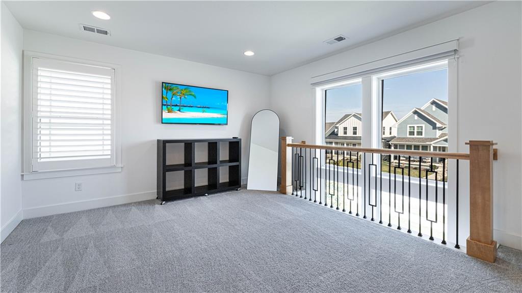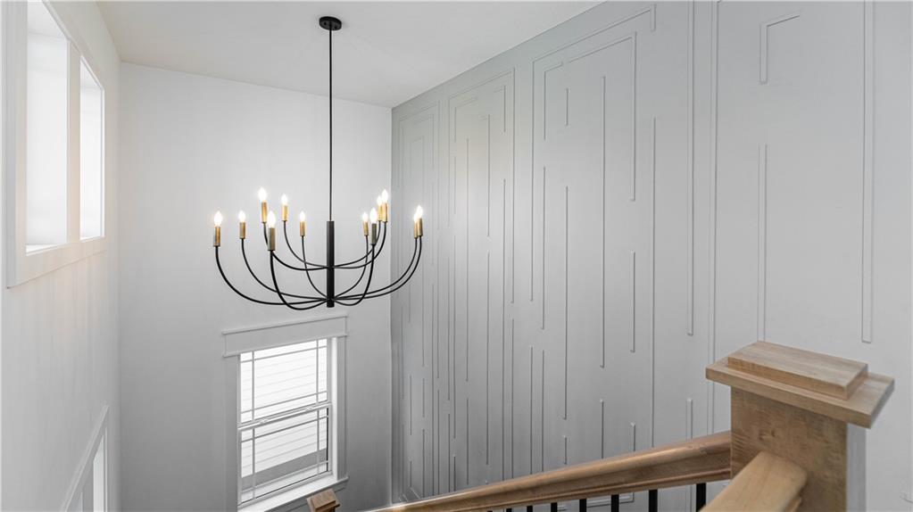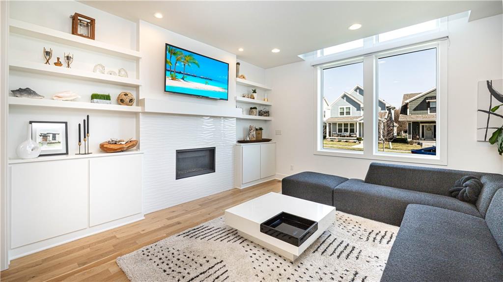 Step into this stunning, modern-chic residence offering 3 bedrooms, 2 full baths, and 1 half bath, thoughtfully designed with high-end upgrades throughout. At just five years young, this home truly stands out. From the moment you enter, you’re welcomed by an abundance of natural light streaming through dramatic two-story windows with motorized blinds. Wide-plank wood flooring flows seamlessly from the living room into the kitchen, creating a warm and inviting atmosphere. The living area features a striking fireplace flanked by custom built-in cabinetry, serving as a beautiful focal point. The kitchen is a chef’s dream, equipped with premium Café appliances, including a six-burner gas range, dishwasher, and a high-end refrigerator (originally valued at over $3,000), all included. Additional highlights include a gooseneck faucet, under-cabinet microwave, and upgraded soft-close cabinetry. You'll also find upgraded plantation blinds. Convenience meets functionality with a main-floor laundry room that also features a built-in desk. The main-level primary suite offers a true retreat, complete with a spa-inspired bathroom showcasing a spacious tiled shower with dual showerheads and double vanities. Upstairs, you’ll find a versatile second living area along with two generously sized bedrooms, each with ample closet space. The full, daylight unfinished basement provides endless possibilities and is already stubbed for a future full bathroom and also boasts a water softener. Completing the home is an attached two-car garage and a fenced side yard, adding both practicality and charm. This exceptional property combines modern style, comfort, and thoughtful upgrades. This neighborhood is home to a lake, swimming pool and walking trails.