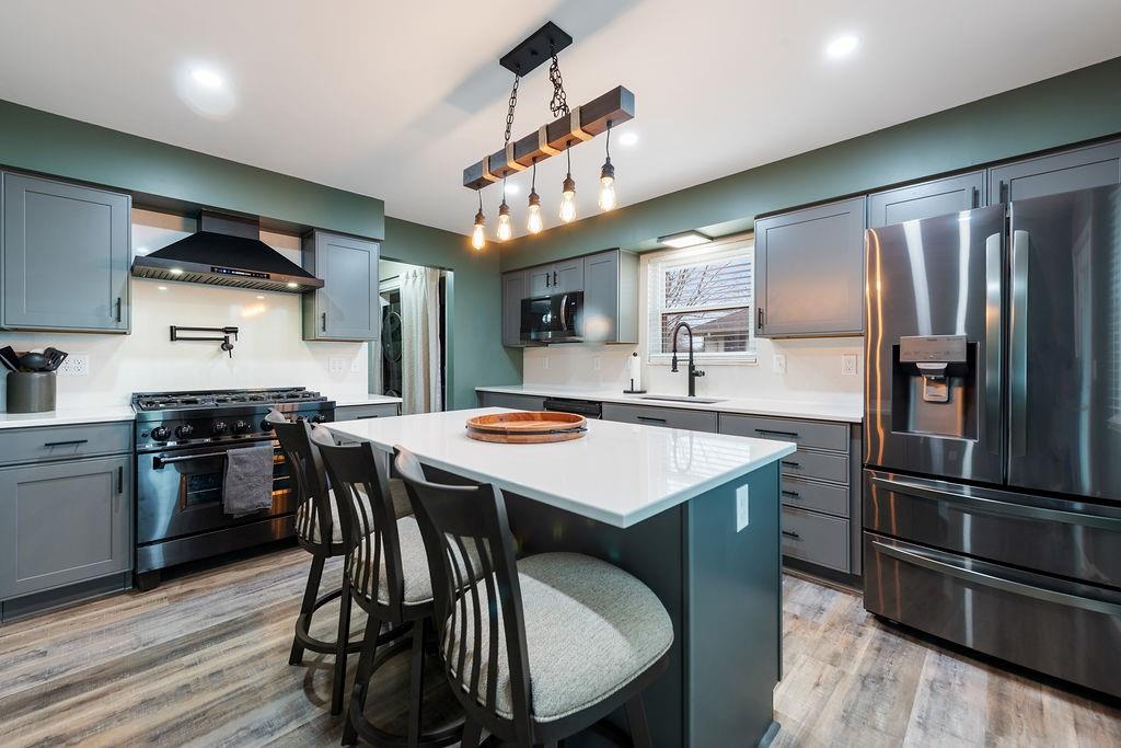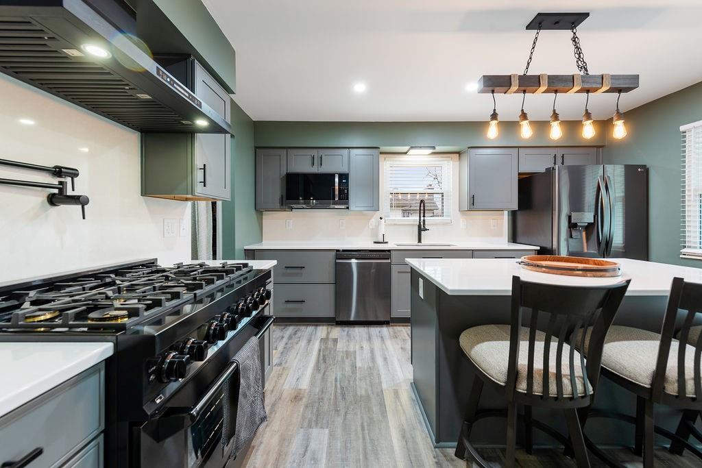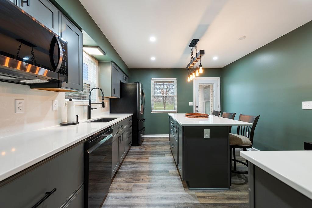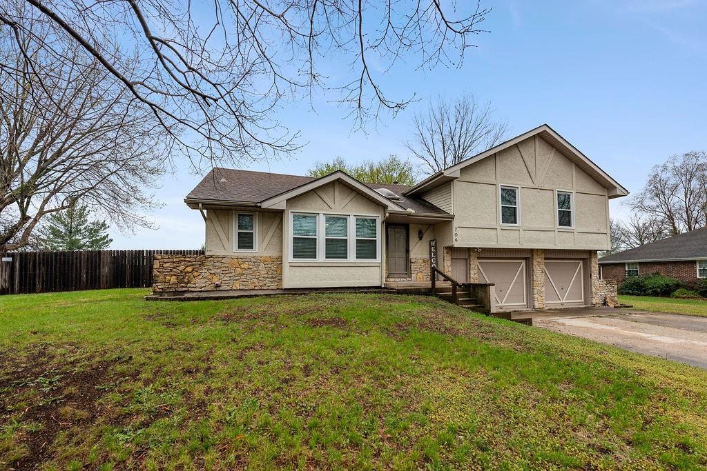 Welcome to 706 Ozark Short Line, where style meets function in all the right ways. Back on market at no fault of the seller — and if you missed it the first time, this is your shot. This side split floor plan offers the perfect blend of openness and separation, with living spaces designed to feel connected while bedrooms stay tucked away for privacy. Modern updates are carried throughout the home, creating a fresh, elevated feel from top to bottom. Step inside to a showstopper living room featuring a floor to ceiling stone fireplace and cathedral ceiling with a statement beam that instantly draws your eye. The kitchen has been completely reimagined with high end finishes throughout, including quartz countertops, black stainless appliances, a ZLINE 6 burner gas range with a vented hood, and designer color selections that give the space a bold, elevated feel. A dedicated dining space sits just off the kitchen, perfect for everyday living or hosting. The finished basement adds extra flexibility with a non-conforming room ideal for a home office, gym, or guest space. Outside is where this one really shines. Sitting on a .38 acre lot, the fully fenced backyard features a pool that feels like new, with updated stairs, liner, pump, sand filter, and skimmer box already done.