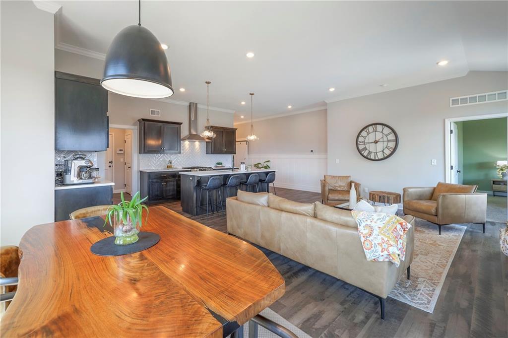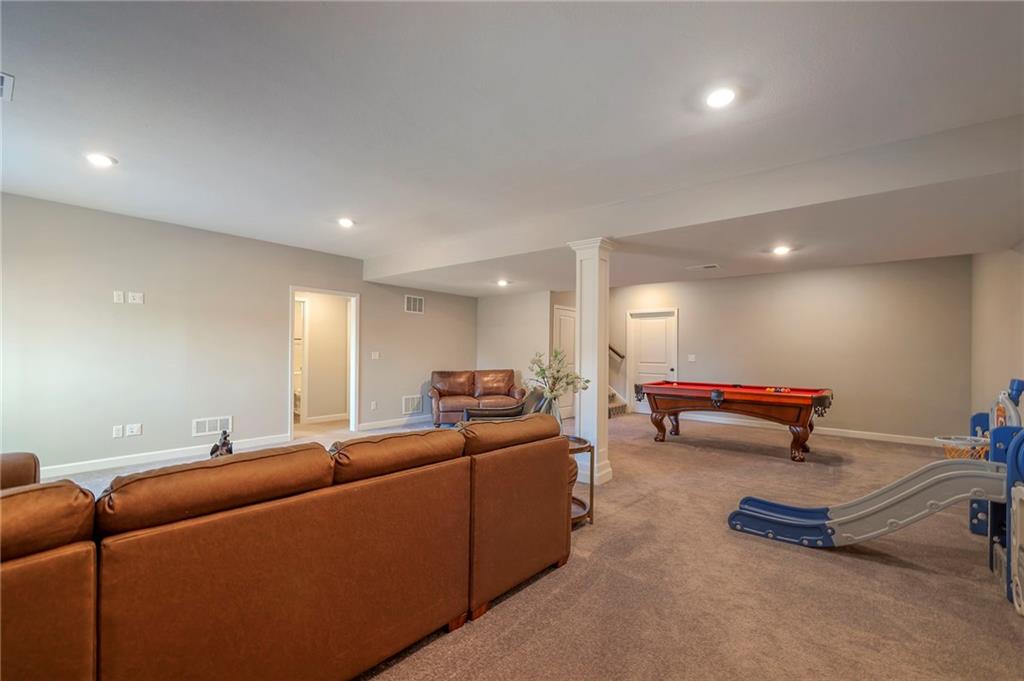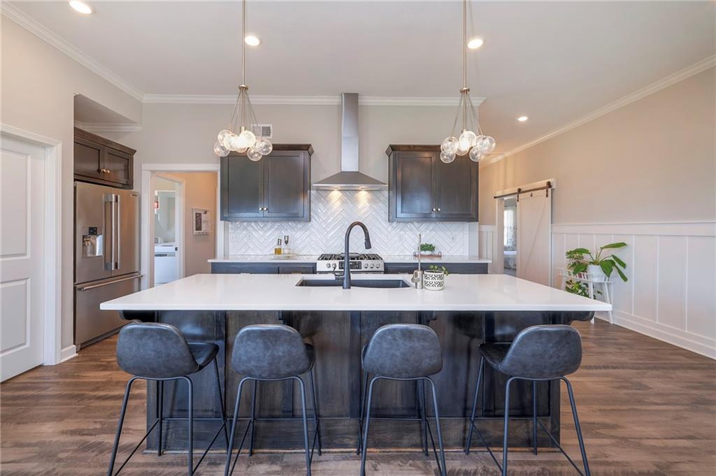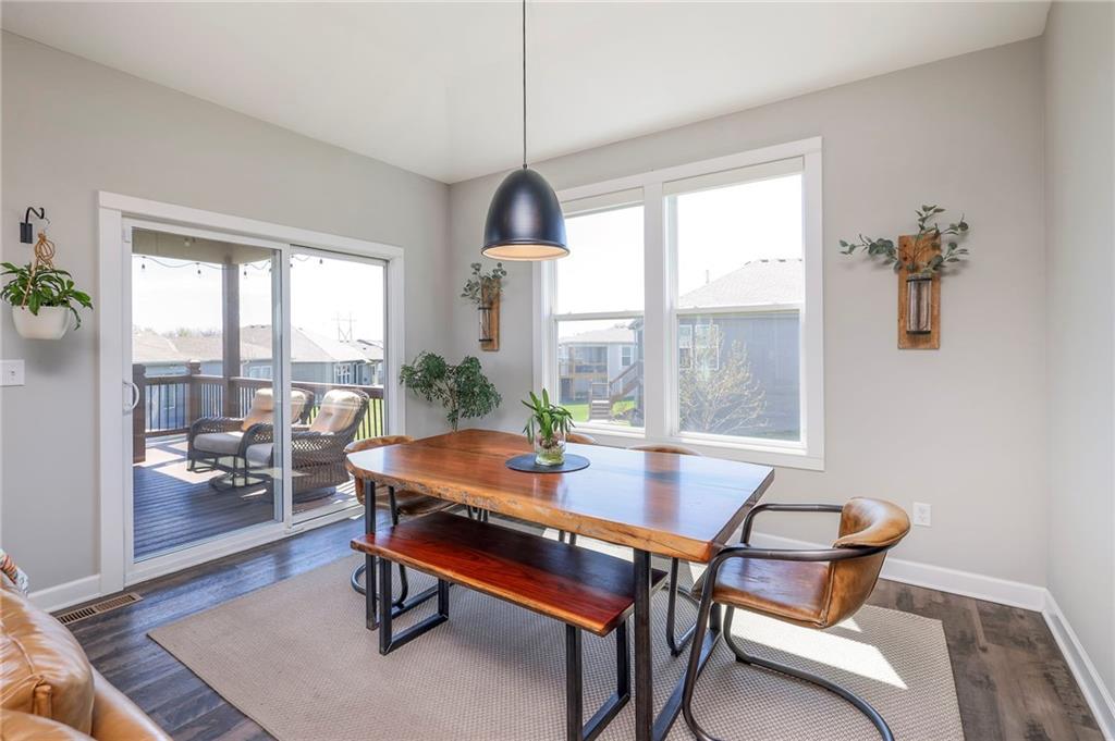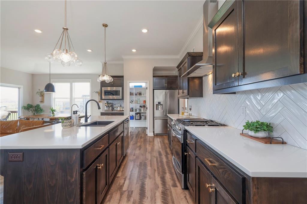 Welcome to effortless, care-free living in this beautifully designed, move-in ready home perfectly situated on a premium corner lot. From the moment you step inside, you'll appreciate the modern open layout, enhanced by engineered hardwood floors and wainscoting entry, upgraded finishes and fresh interior paint. The designer kitchen is truly the heart of the home, featuring custom cabinetry, a large center island, walk-in pantry, gas range and Frigidaire stainless steel appliances-all included. A charming coffee bar adds both function and style, making mornings something to look forward to. The spacious primary suite offers a relaxing retreat with a tray ceiling and large windows that fill the room with natural light, along with a custom tiled shower for a spa-like experience. Additional thoughtful touches include a stylish barn door, ceiling fans, faux wood blinds, upgraded front door, and a wrought iron fence. Cozy up by the gas fireplace with floor to ceiling stacked stone or step outside to enjoy the extra large covered composite covered 13' x 13' deck-perfect for entertaining or unwinding. The finished lower level, daylight basement, provides additional living space, an additional bedroom and full bath with plenty of unfinished storage space to do with what you would like, while the garage offers even extra storage for convenience. This home also includes an active radon mitigation system and a kitchen sink water filtration system for added peace of mind. Enjoy maintenance provided living with lawn care and snow removal for a mandatory $150/month. Community amenities are second to none, featuring a clubhouse, pool, playground, party room, and scenic walking trails. This home truly has it all-style, comfort, and convenience-ready for you to move right in and enjoy!! Why pay for new construction when you can everything you want right here. It's just waiting for you!
