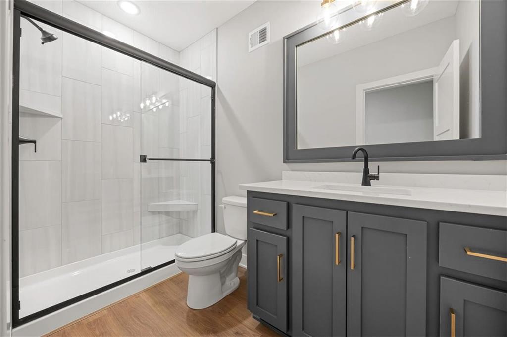 Situated on a level lot with a covered patio, this thoughtfully designed home offers comfort, style, and exceptional functionality. The inviting great room features a beautiful stone fireplace and built-in cabinetry, creating a warm focal point that flows seamlessly into the kitchen. Designed with both style and practicality in mind, the kitchen showcases upgraded quartz countertops, a custom coffee bar, and a large walk-in pantry, offering plenty of space for storage and gathering. Just off the garage, the owner’s entry includes custom lockers, helping keep everything organized and functional for daily life. The main level also offers a convenient pocket office, perfect for working from home or managing day-to-day tasks, along with a separate guest bedroom on the main floor for added flexibility. Throughout the home you’ll find upgraded trim, decorative accent details, and numerous tile and finish upgrades, highlighting the quality craftsmanship in every space. The lower level is unfinished but already stubbed for a future bathroom and wet bar, giving buyers the opportunity to expand the living space and customize it to fit their needs. Additional highlights include an oversized garage and extended driveway, providing extra room for vehicles and storage.
