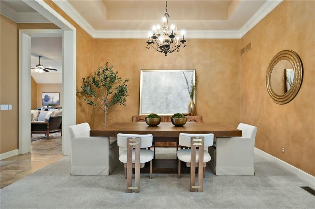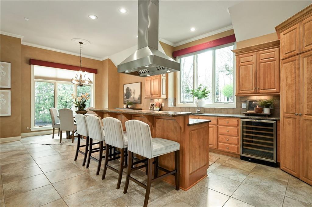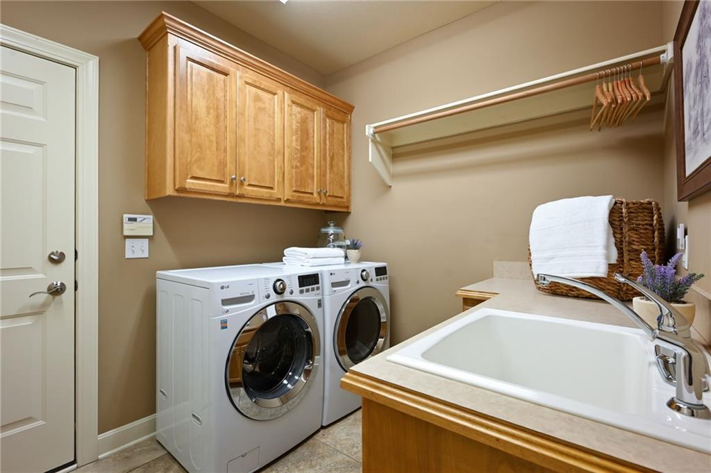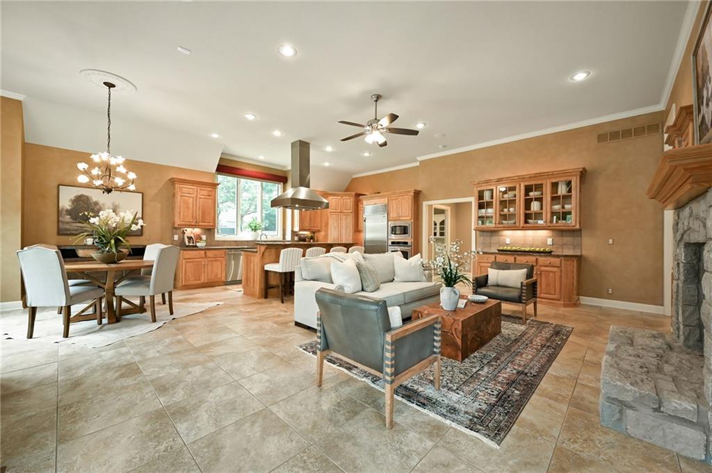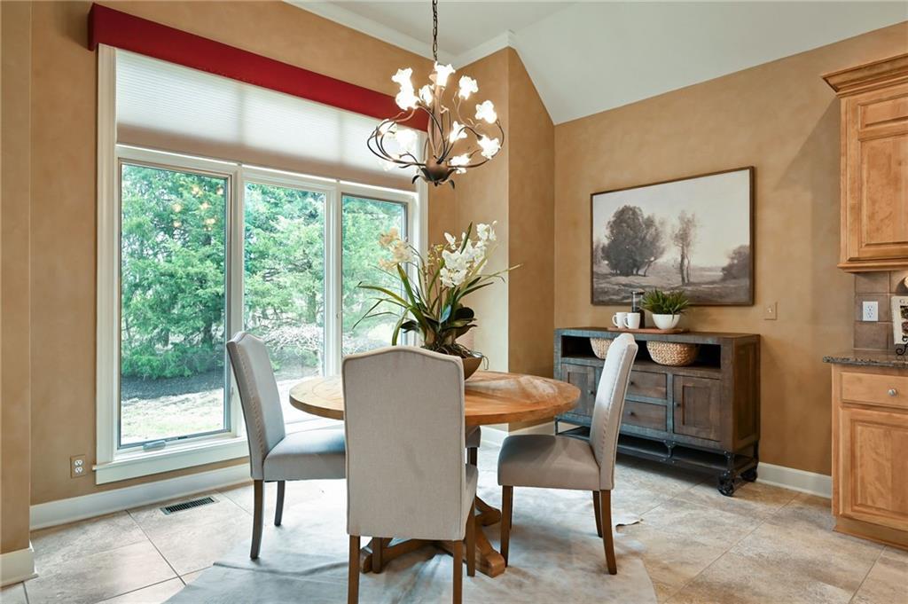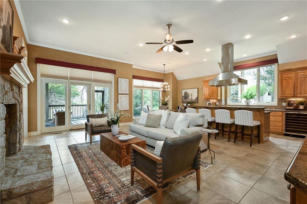 Set at the end of a quiet cul-de-sac in Cedar Creek, this meticulously maintained reverse 1.5-story pairs refined scale with a private, tree-lined backdrop. With 4 bedrooms, 3.1 baths, a 3-car garage, and 4,015 square feet on a .42-acre lot, the layout delivers substantial main-level living with beautifully finished space below. Approximately 2,815 square feet on the main floor is elevated by high ceilings, generous windows, and seamless flow through the formal dining room, great room, hearth area, and kitchen. A see-through fireplace connects the great room and hearth room, creating warmth and architectural interest. Designed for both daily living and entertaining, the kitchen features a Sub-Zero refrigerator, Viking cooktop, wine fridge, bar-height seating, and breakfast nook. The main-level primary suite offers a calm, spacious retreat with vaulted ceilings, soft natural light, and peaceful views of the trees beyond. The ensuite bath is designed for everyday comfort with a jetted tub, double vanity, and a walk-in shower with an open entry. A substantial walk-in closet adds exceptional storage and organization, completing a private haven that feels both luxurious and serene. Downstairs, the finished daylight walkout lower level adds exceptional flexibility with a large family room, fourth bedroom, full bath, and abundant unfinished storage. Outdoor living continues with a screened porch featuring composite decking, a patio, in-ground sprinkler system, and a setting that backs to mature trees. Located in one of west Olathe’s most desirable communities and served by Olathe schools, Cedar Creek offers swim and racquet amenities, pickleball and tennis courts, Shadow Lake, trails, neighborhood events, and more. Golf is available with separate membership, while convenient access to 119th Street, K-10, and the greater Kansas City metro adds to the appeal. Arrange your private tour to appreciate the setting, layout, and finish in person.
