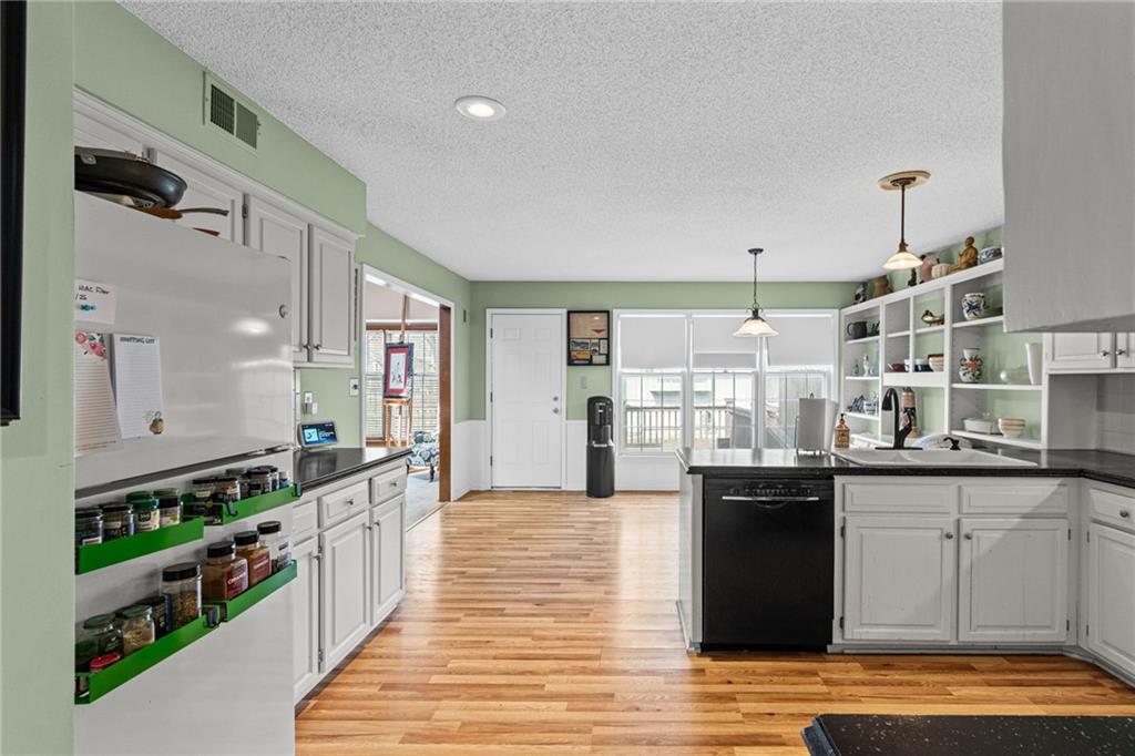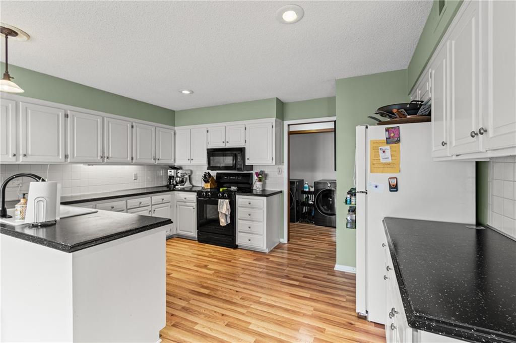 Conveniently located close to 119th Street and HWY 69. Spacious floorplan with extra large kitchen with loads of counter space and cabinets. Garden side eating area highlighted by a wall of open shelving. Great room features vaulted ceiling with 2 sky lights, 2 ceiling fans, and a fireplace. Two bedrooms, two baths, one redone, plus small sitting area up. Roof 3-4 years old. Private, back of cul-de-sac setting backs to open green space, yet convenient to main entrance. Needs some freshening up, priced accordingly. HOA includes: lawn maintenance, snow removal, trash pickup, exterior painting. Exterior painting due this year.