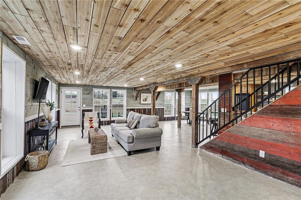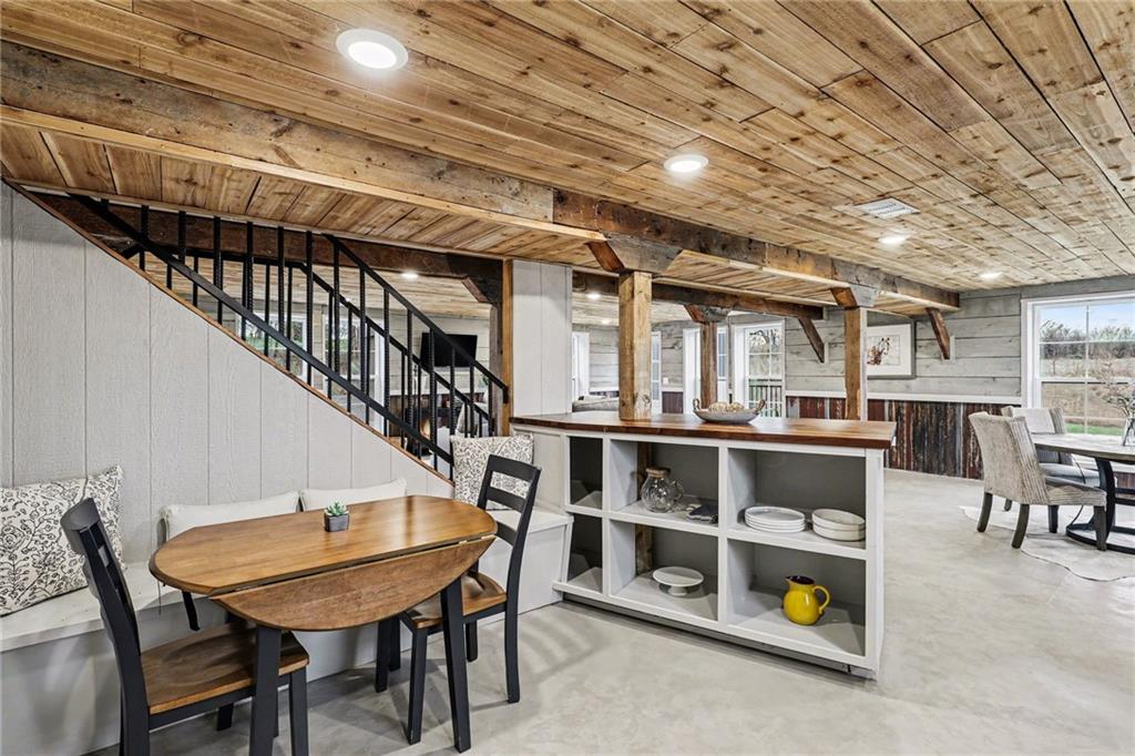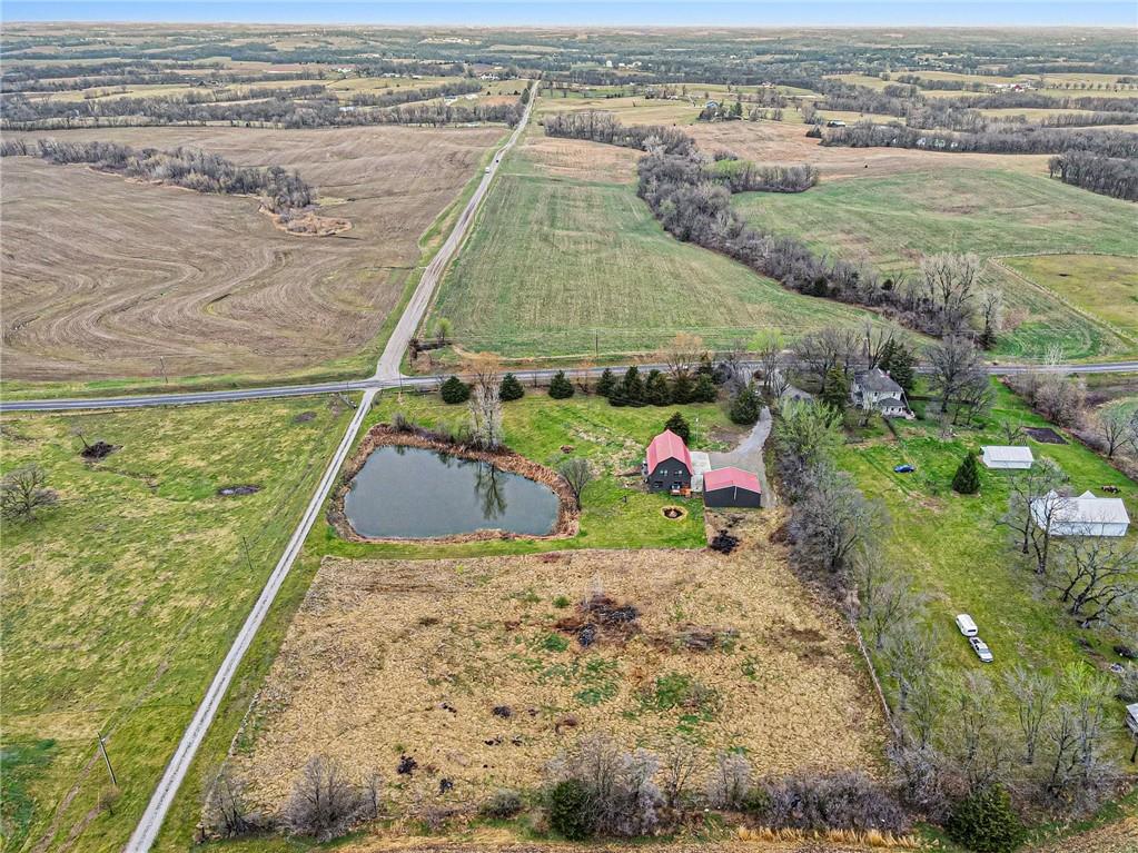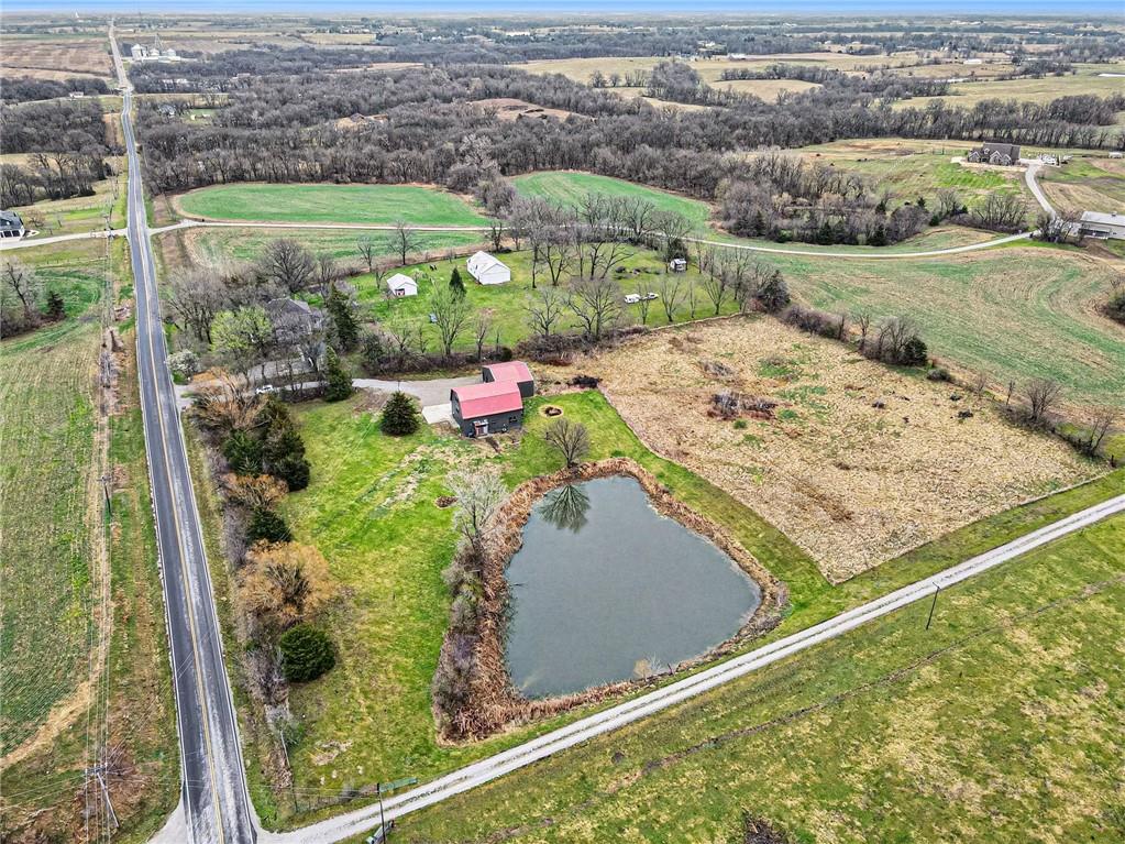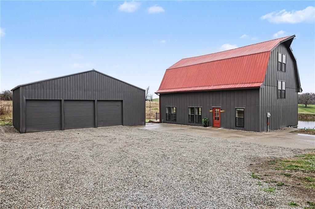 Experience the perfect marriage of turn-of-the-century character and cutting-edge luxury in this stunning 1900 barn conversion! Situated on 4.75 private acres, a half-hour from KC International airport, this three-story masterpiece has been meticulously reimagined into a sophisticated four-bedroom, five-bathroom retreat that defines "one of a kind." The main level anchors the home with a chef’s dream kitchen. Designed for both high-function and high-style with premium GE Café appliances and professional-grade finishes. With warm pine accents that nod to the structure's historic roots, an expansive layout flows effortlessly into the first of two distinct living areas. Ascend to the second floor to find a spectacular lofted great room. This massive secondary living space is the ultimate "game-day" destination, complete with a dedicated wet bar and a layout designed for large-scale entertaining or quiet relaxation. The primary suite is a masterclass in convenience and comfort, offering dual walk-in closets and integrated secondary washer/dryer hookups, ensuring laundry day is effortless. Spa-like finishes that create a true sanctuary. The beauty of the 4.75-acre lot is pulled indoors through thoughtful design, but the outdoor features are equally impressive. After a day exploring the grounds, use the outdoor shower to rinse off while overlooking the serene pond—perfect for keeping both owners and pets clean. A 42x30 outbuilding provides ample space for a workshop, studio, or equipment storage. This isn't just a home; it's a piece of history updated for the modern connoisseur with Smithville Lake, shopping and dining less than 20 minutes down the road. Schedule your private tour today to experience the scale and craftsmanship of this rural luxury estate!
