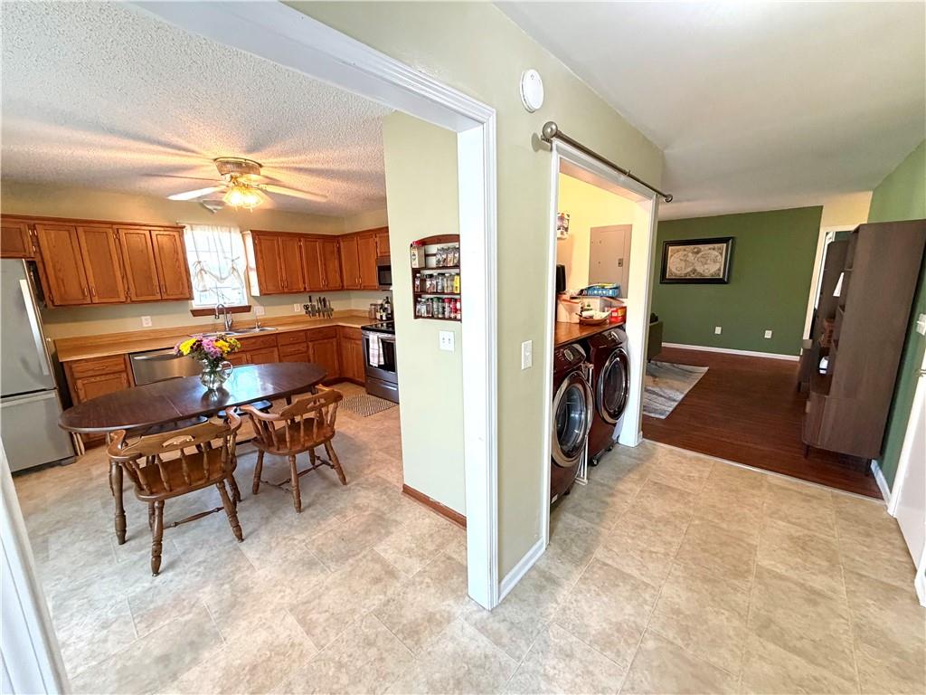Tucked into a quiet cul-de-sac in the popular FoxRidge Subdivision, this home keeps things simple & functional, with space where it matters most! This slab home with a partially new roof keeps things all on one level & offers solid floors throughout. The extra large kitchen is a true standout with space for a full-size table right in the middle. Plenty of cabinet storage, a pantry, food counter space, and room to move without feeling crowded make this kitchen a natural spot for meals & conversations. The living room centers around a cozy wood burning fireplace, but also offers good natural light through the back doors. It's a comfortable but generously sized room you'll love to hang out in. All 3 bedrooms offer large closets and South or West facing windows. The Master bath has a new toilet, a shower over a tub, and a new sliding barn door to separate it from the spacious bedroom area that has a nice walk in closet. Out back the covered porch gives you a place to sit outside, rain or shine, and unwind overlooking a fully fenced backyard with a storage shed already in place. Practical upgrades include a reverse osmosis system, a water filter, and a tankless water heater. Add in an ample 2 car garage and a location just minutes from town and amenities and you've got a home that is straightforward, updated where it matters, and ready to make your own! *All measurements are approximate. Buyers are recommended and encouraged to take their own measurements during their inspection period*