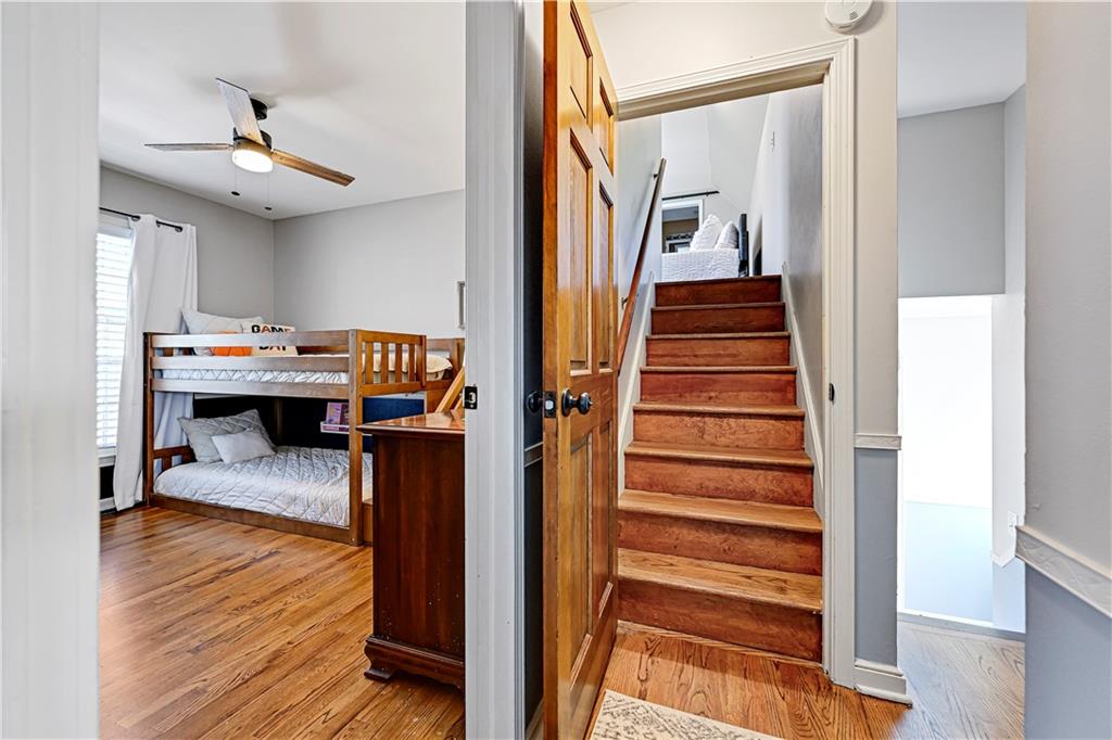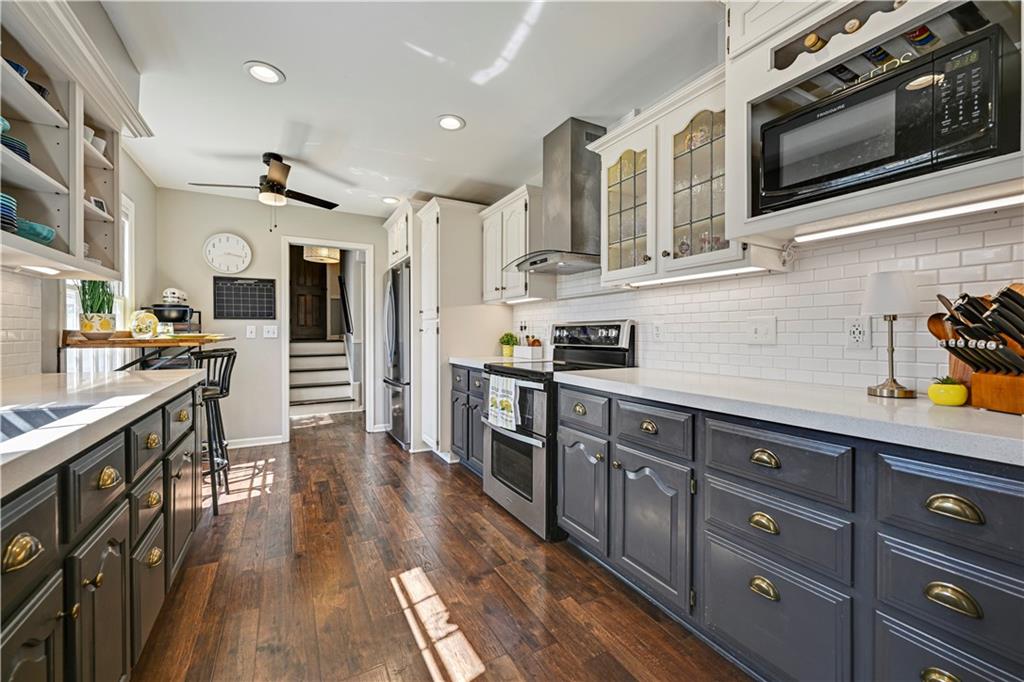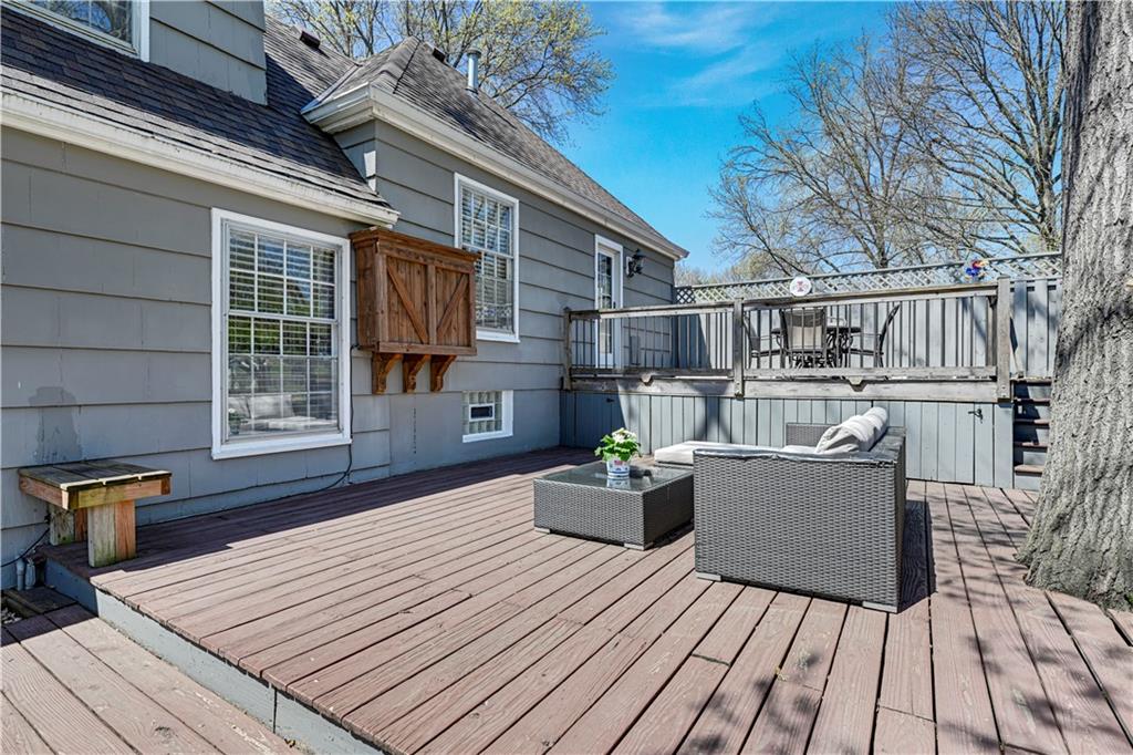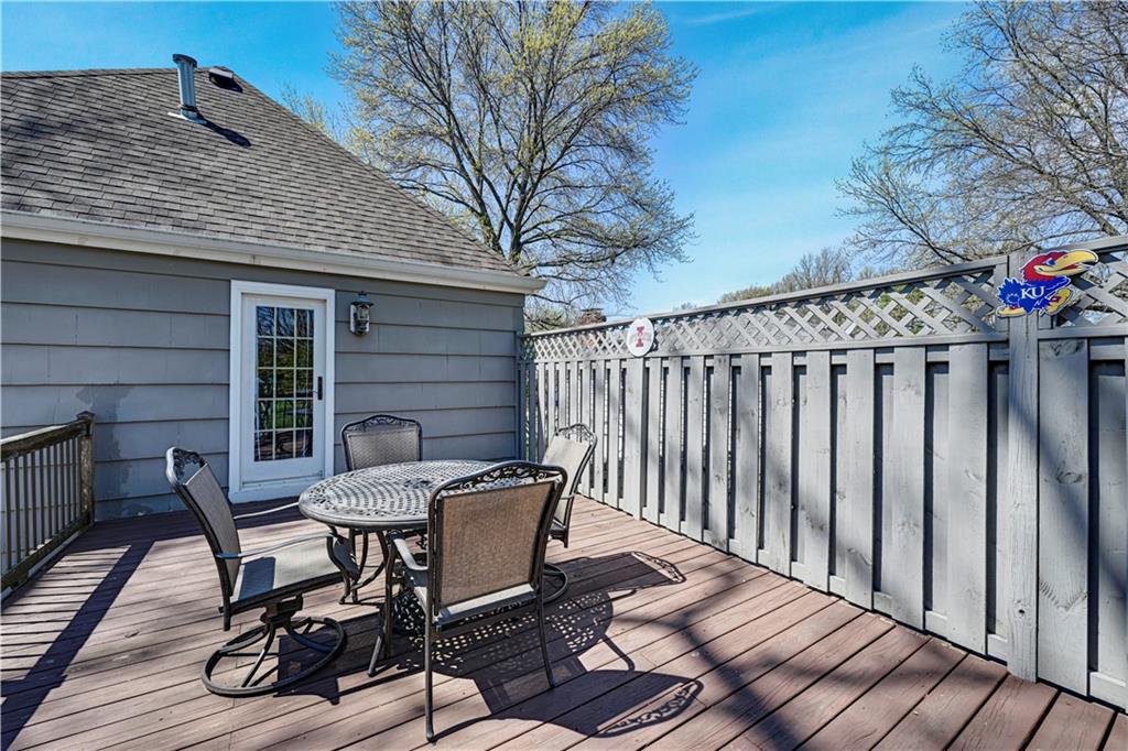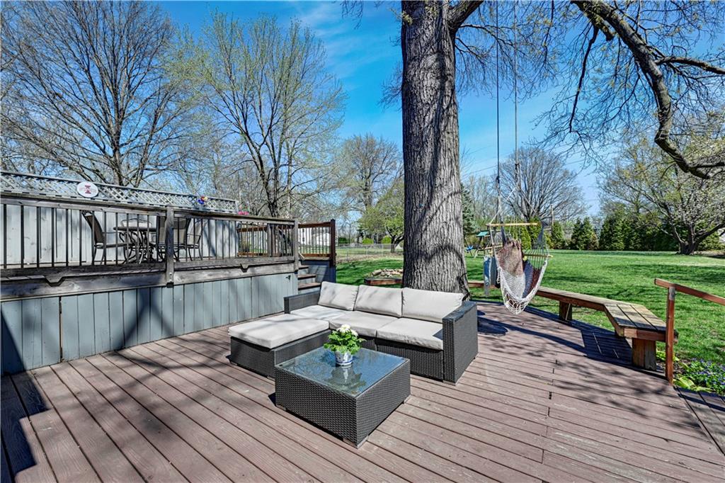 You’ll want to hurry on this one! This beautifully maintained 4BR, 3BA side/side split sits on a stunning ½+ acre lot in the heart of Overland Park & move-in ready. Lovingly cared for by its current owners, this home features thoughtful updates thruout. The kitchen has been reimagined w/new flooring, painted cabinetry—including open shelving and lighted glass-front cabinets—plus a newer stove & added can lighting for a bright, modern feel. Main level has been opened up to create a seamless, inviting space perfect for everyday living & entertaining, complemented by beautifully refinished hardwood floors. 3BR's are conveniently located on the same level, all featuring hardwood flooring. The primary suite, situated at the front of the home, offers an updated en suite w/solid surface vanity & custom-designed closet system for optimal storage. The hall bath has also been refreshed w/updated vanity & lighting & serves the addl BR's. The 4thBR, located just half a level up, provides added privacy & includes its own updated en suite bath w/shower—ideal for guests, home office, or private retreat. The LL has been transformed into a versatile space featuring a cozy TV/play area, bar area & dedicated exercise space with rubber mat flooring. You’ll also find the laundry room here, complete with a convenient utility sink. Storage is abundant throughout, including easy attic access off the fourth bedroom. Step outside and prepare to be impressed. The expansive, fenced backyard is a rare find, offering endless possibilities. Custom built TV cabinet is in place to enjoy the patio, or gather on the multi-level deck (with BONUS roll-out storage) that beautifully wraps around a mature tree—creating a one-of-a-kind outdoor entertaining space. The backyard also features a charming outbuilding, swingset, and permanent picnic table—all of which stay with the home. Whether you envision a garden, pool, sports area, or all of the above, there is room to make it your own.