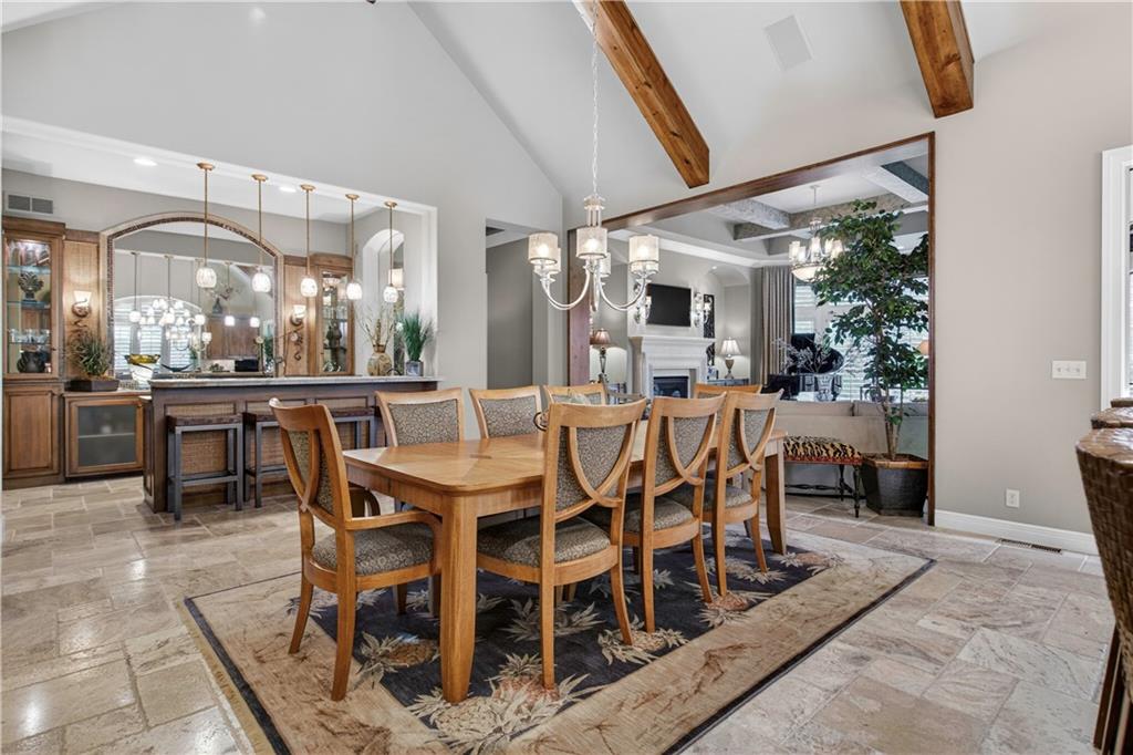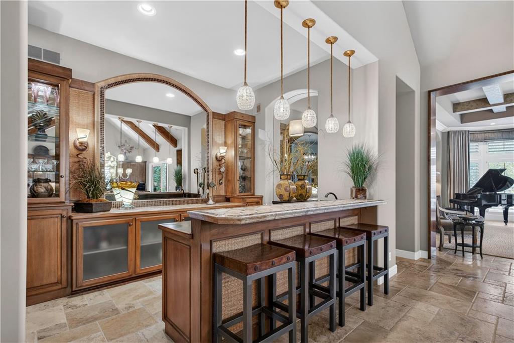 Step into the original & iconic Clydesdale floor plan -The blueprint for one of Johnson County's most sought-after luxury layouts. Built by Willis Custom Homes as the builder's personal residence, this home offers over 5300 sqft of elevated detail & finish, setting the benchmark that dozens of luxury home builders across Johnson County have followed for more than a decade. The craftsmanship, materials, & construction quality simply cannot be replicated anywhere close to this price point today. Rich stained woodwork and natural stone tile floors on main and lower level create a warm, welcoming ambiance from the moment you enter. Designed with both architectural elegance and everyday livability in mind, the main level is an entertainer’s dream, complete with a wet bar where family and friends naturally gather. Great room and kitchen open to a spacious screened outdoor room with stone fireplace, plus mid-level grilling deck overlooks a stamped concrete patio, creating a seamless indoor/outdoor experience. Lower level is designed for unforgettable entertaining, featuring a large sports bar, home theater, stone fireplace and accent walls, plus generous seating for game days or movie nights. Three additional ensuite bedrooms are located downstairs, along with a dedicated workout room and additional storage beneath the suspended garage. Systems in this amazing home match the finishes and include updated Control-4 whole-house audio/video/security, with 15 TVs (included), 3-zone HVAC with humidifiers, whole-house water filtration, plantation shutters throughout, and a lower courtyard stubbed for hot tub. The warmth, craftsmanship & details that make this home truly special simply can't be captured in photos or words, and we welcome you to experience it in person. The Villas of Whitehorse is a maintenance-provided community --lawn care/snow removal included, with access to neighborhood pool, clubhouse, & tennis courts. Sellers are licensed Real Estate Agents in Kansas.